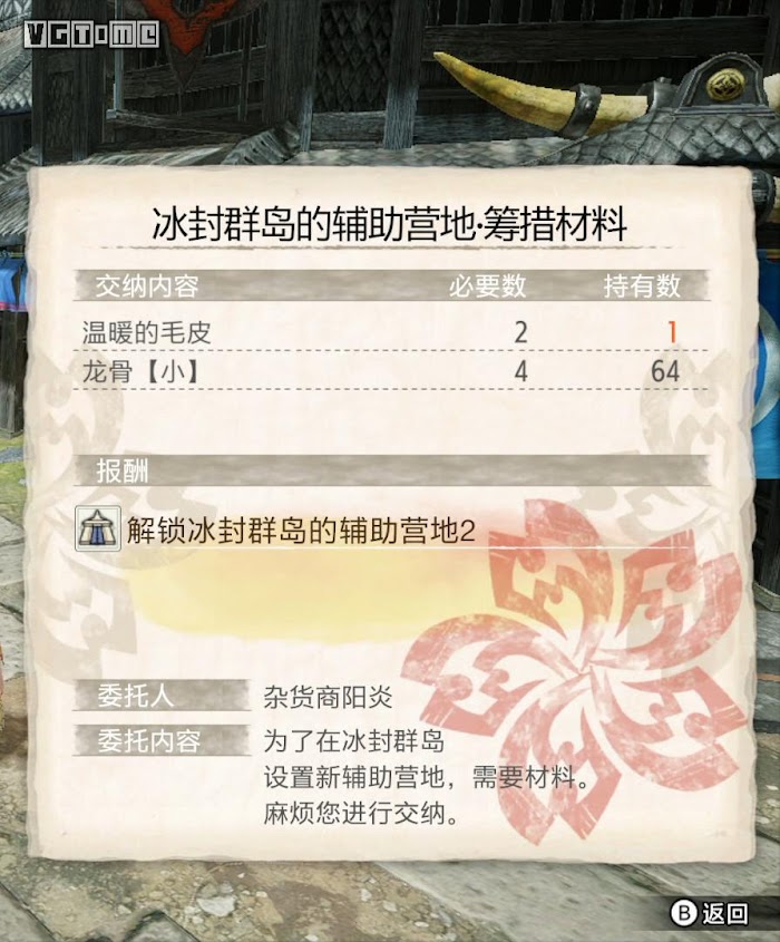 「溫暖的皮毛」可以通過剝取精靈鹿、雪鹿來獲得,地圖上比較常見,龍骨【小】可以通過採集骨塚來獲得。