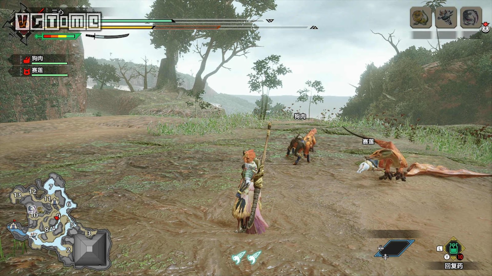 毒狗龍多出現在上層的平臺上,9 區出現的頻率比較高,數量不夠或是出現別的小怪的話可以退出自由探索任務重進反復刷。