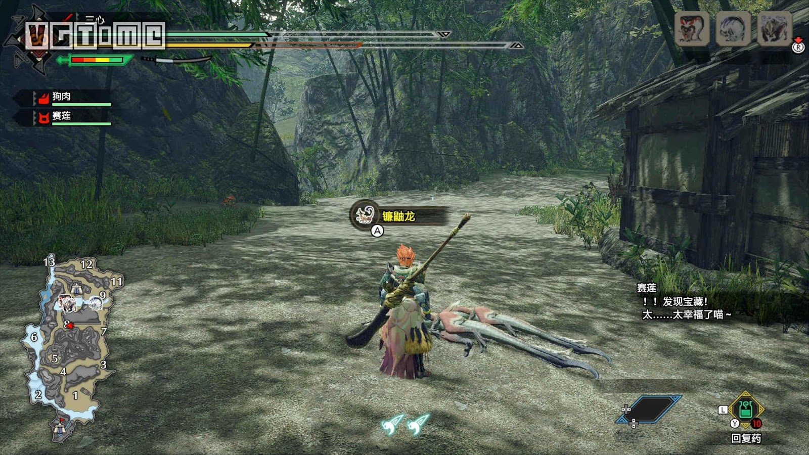 鐮鼬龍在廢神社還是比較常見的,8 區附近就可以刷出來幾隻,有時候刷的是別的小怪,可以試著退出自由探索重進刷新,或者直接接狩獵鐮鼬龍、鐮鼬龍王之類的廢神社任務。