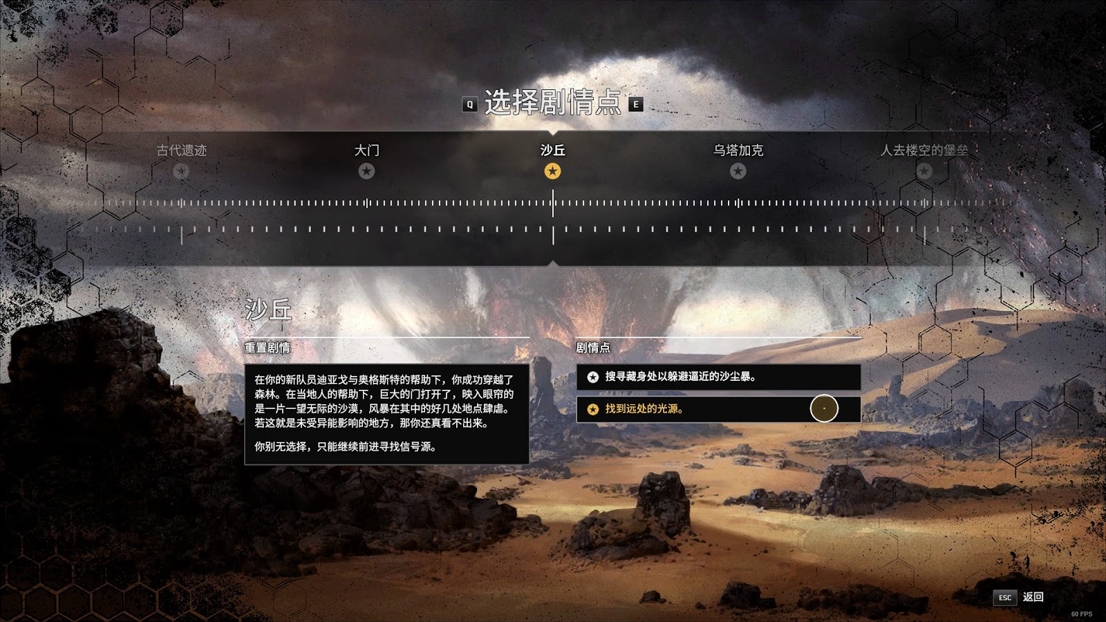 選擇章節“沙丘”,選擇第二個劇情點“找到遠處的光源”