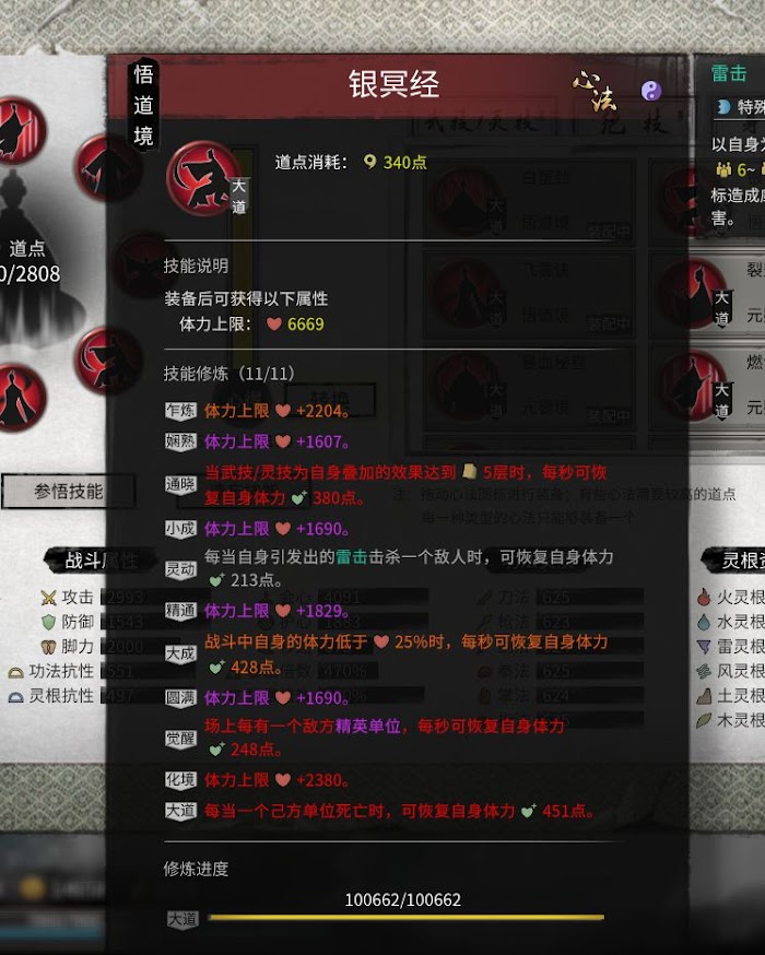 2. 劍神功,核心詞條如圖: