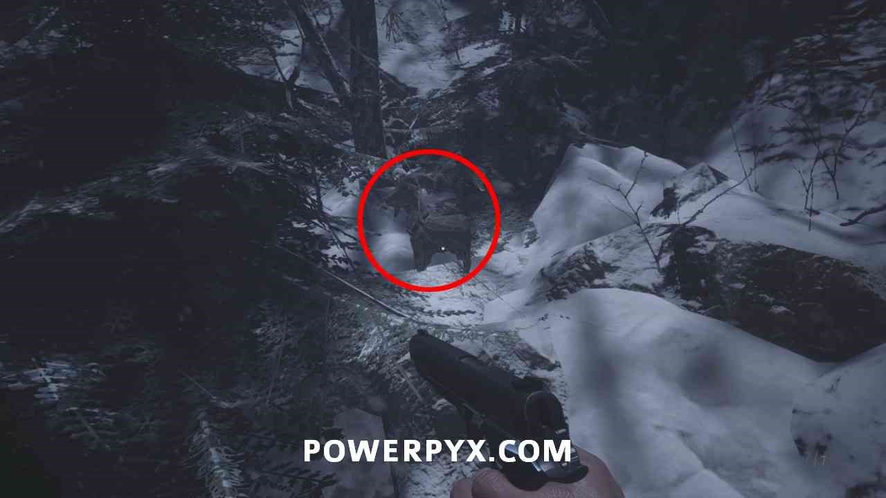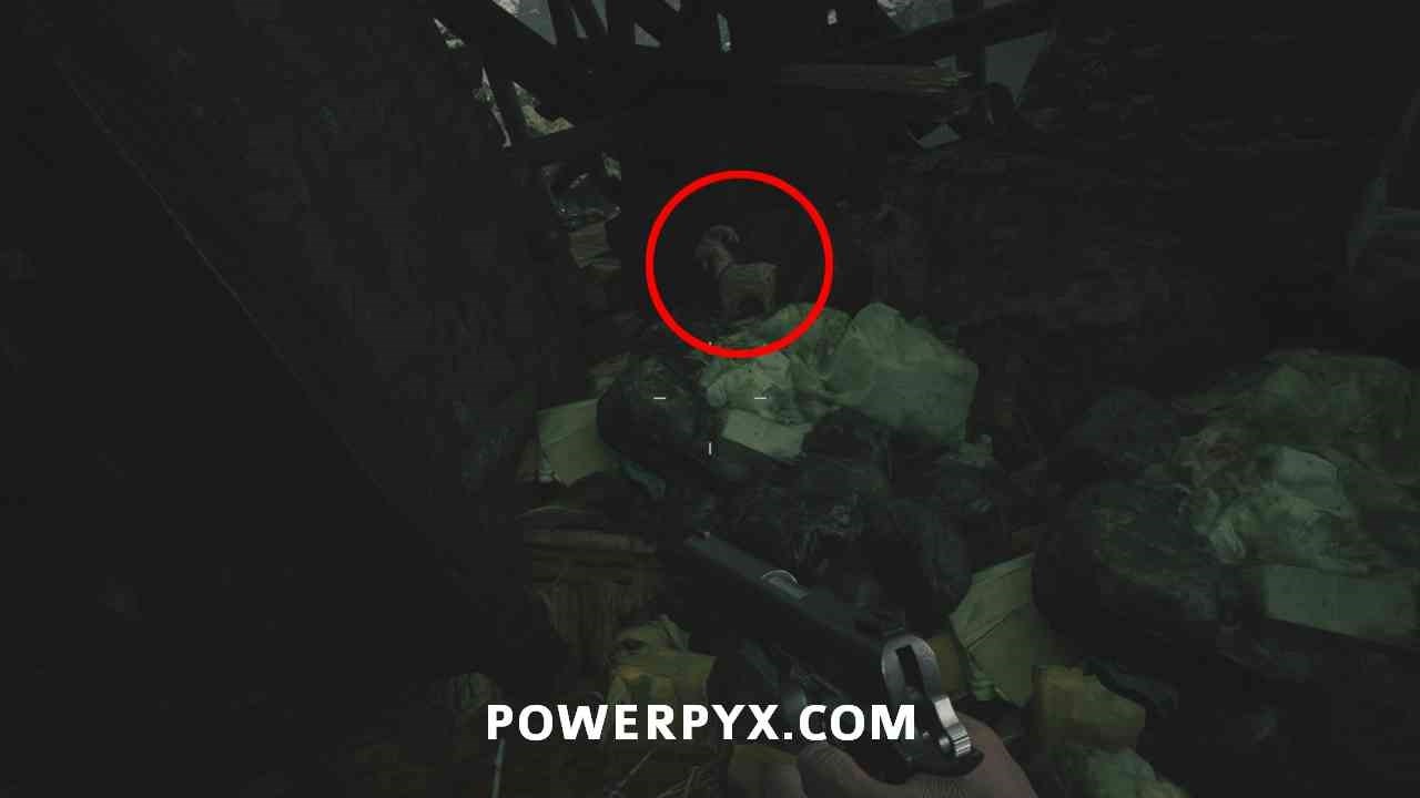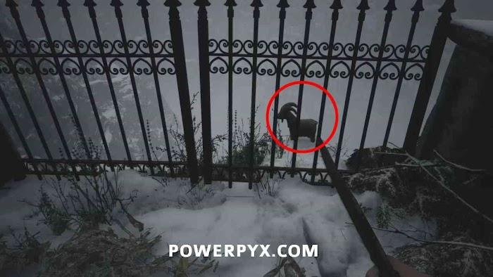 看完克裡斯向菌主(掛在房頂上的巨大胎兒)扔出炸彈的過場動畫後,這片區域會出現無法靠近的尖刺,尖刺後面的陰暗角落裡有一尊女人的雕像,山羊就在雕像前面(由於比較黑很容易漏掉,且此部分劇情無法查看地圖)。