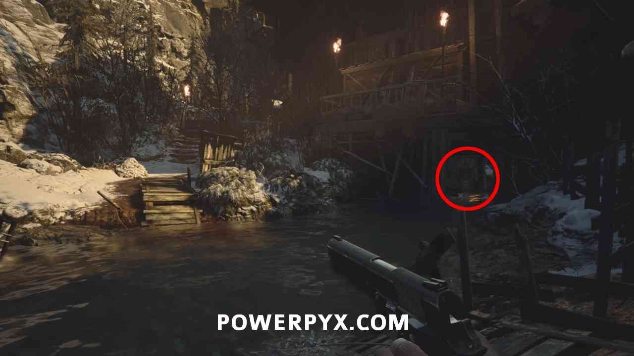 村莊1層-小徑:與蒂米特雷斯庫夫人BOSS戰之後遇到第一個敵人時,沿著左側木梯往下來到吊橋,山羊就在樓梯下面。
