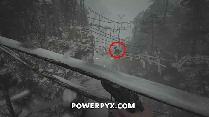 村莊1層-懸索橋:在前往貝內文托家的路上,路過懸索橋時往左看,山羊就在旁邊的木橋上。