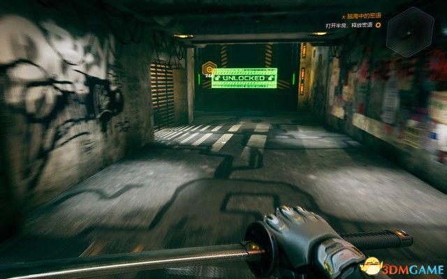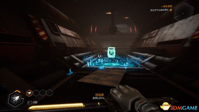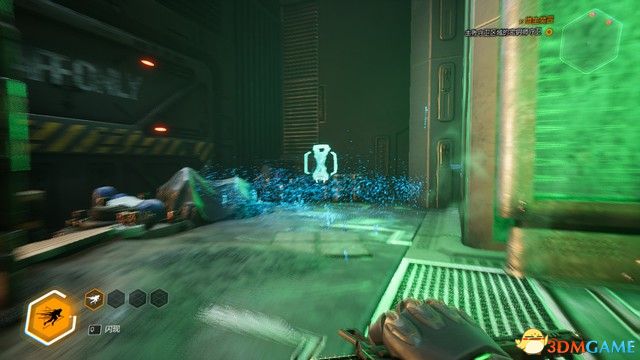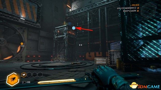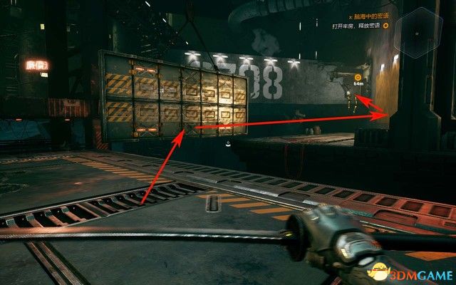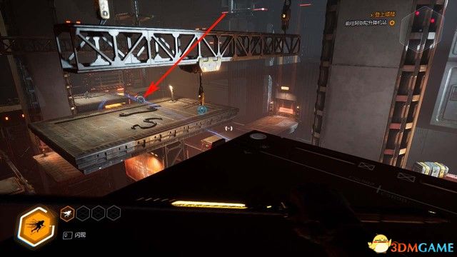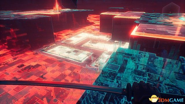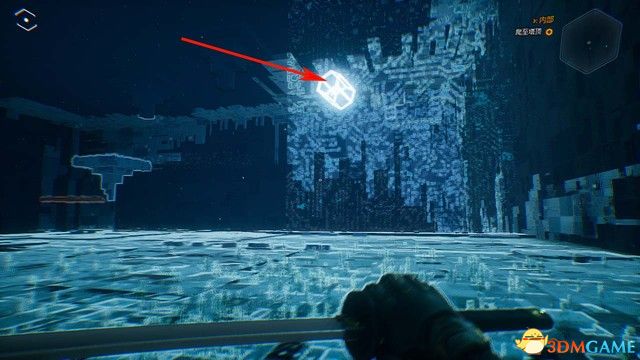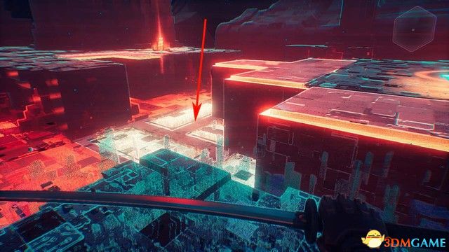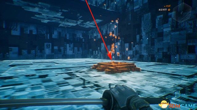 賽博空間內,如下圖箭頭所指,在關卡的中央,會有發光的格子提示,