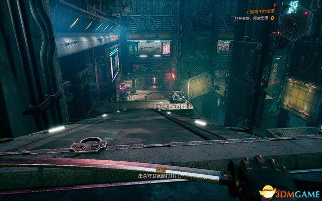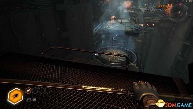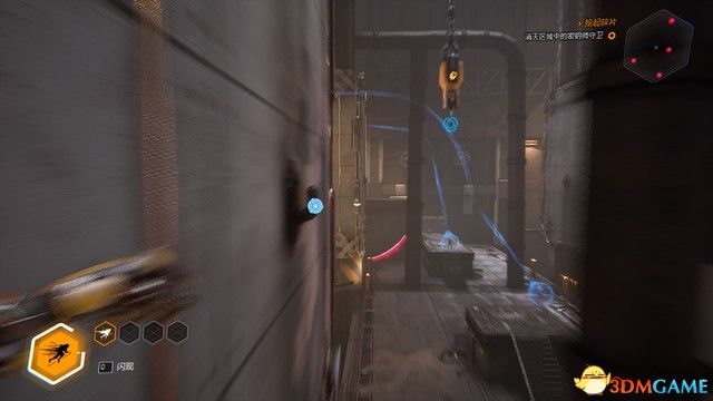 前方遇敵,使用鉤索過去後,空中感官增強,落地後將其擊殺。
