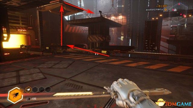 按下控制台後立即飛上去,利用慣性飛到正前方平臺上,