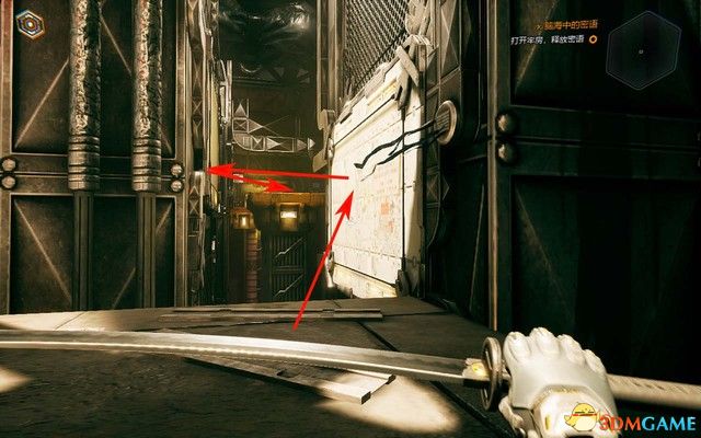 ①.走左路,如下圖箭頭所指,當鉤索移動到這裡的時候,