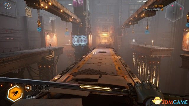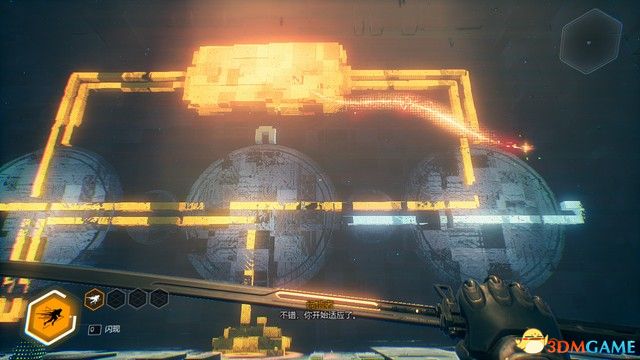 然後就是賽博空間,首先,我們的目標是黃顏色的入口,先沿著透明道路往前走,