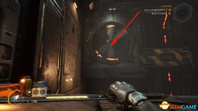 室內的最後一段,前方有紅色屏障,需要借助感官增強修正自己的位置過去。
