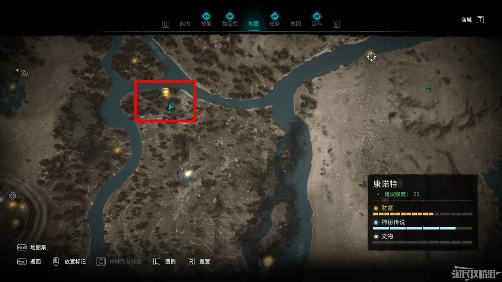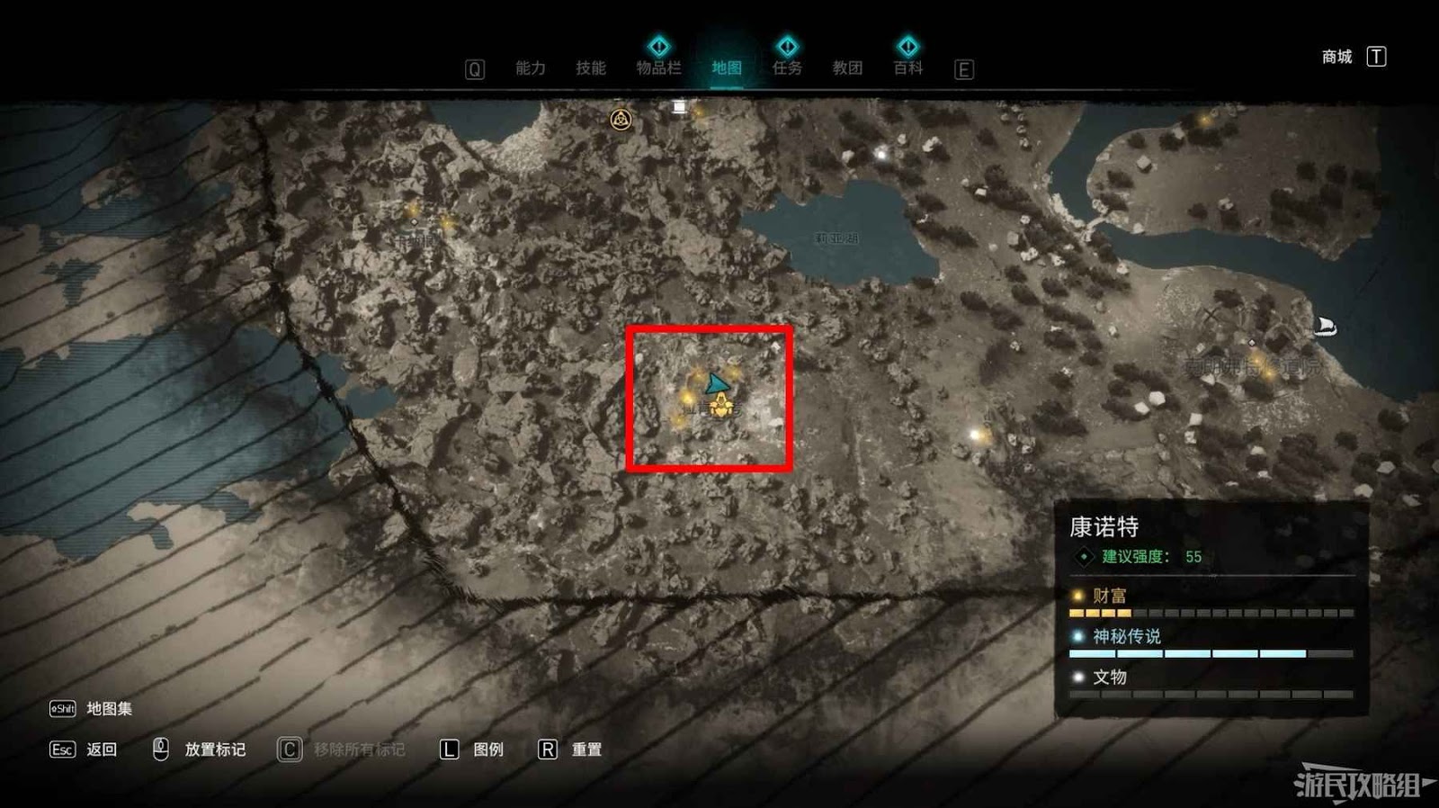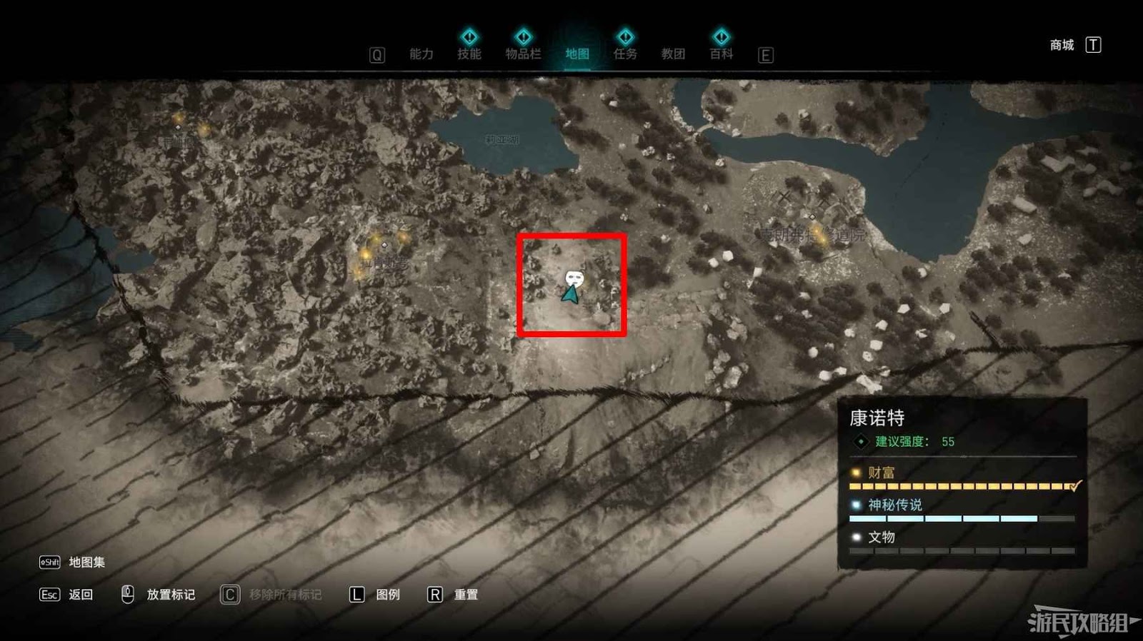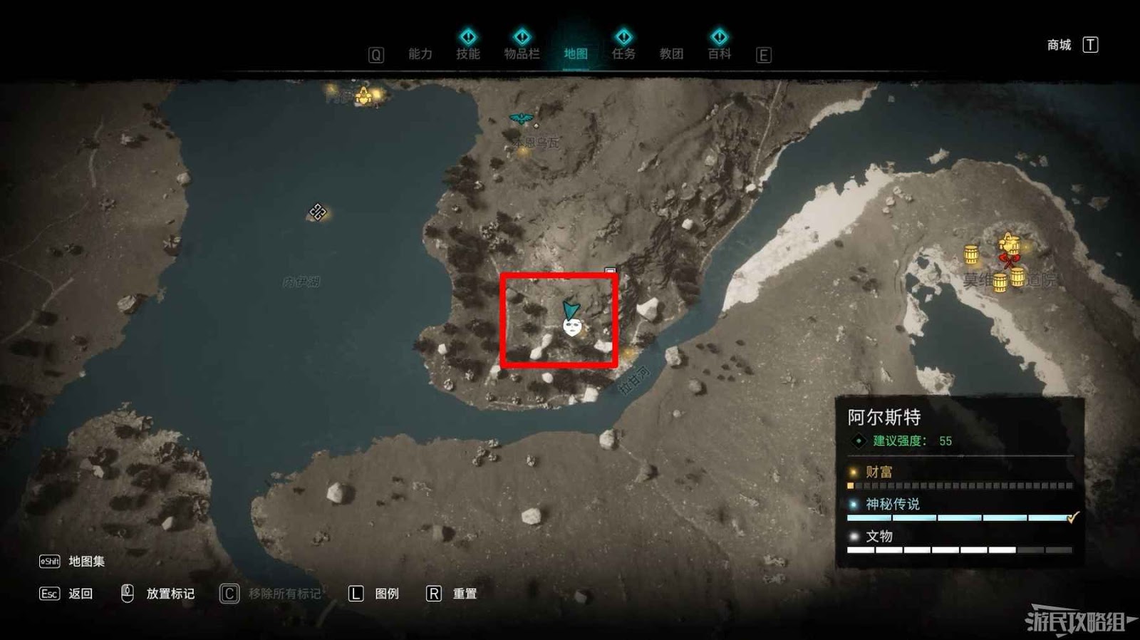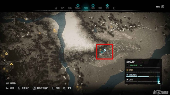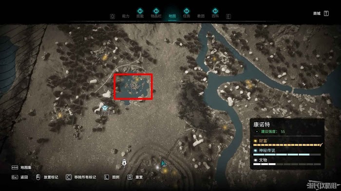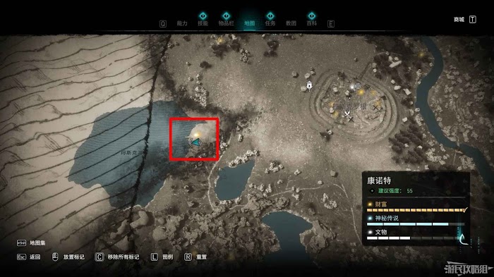 第二個詛咒標記位於地圖北側,裡斯摩爾修道院西部。