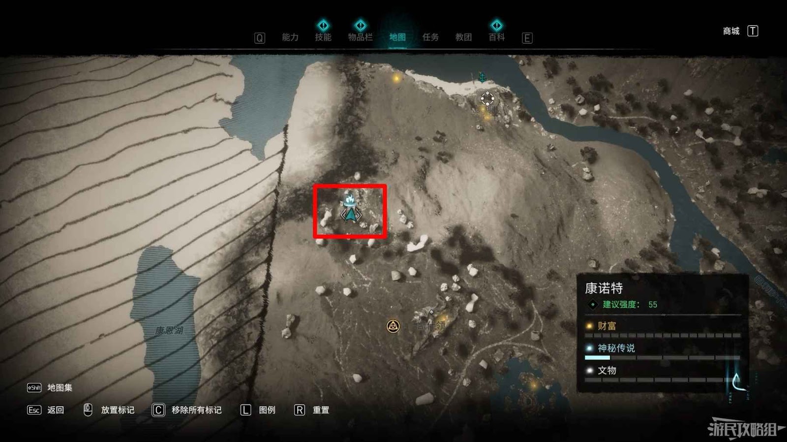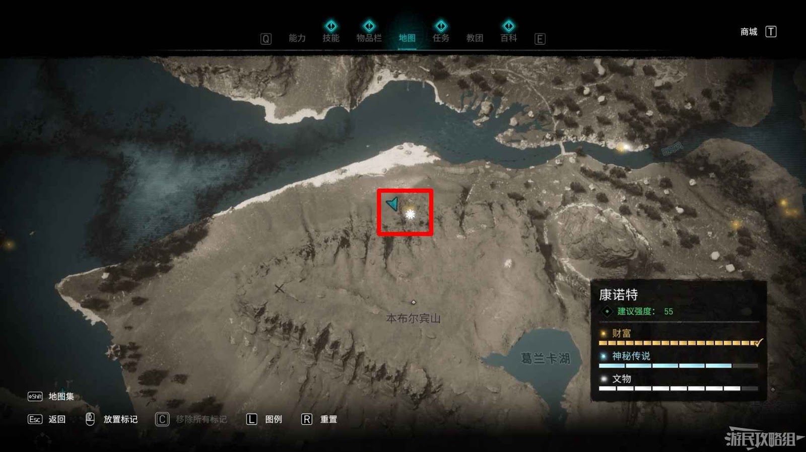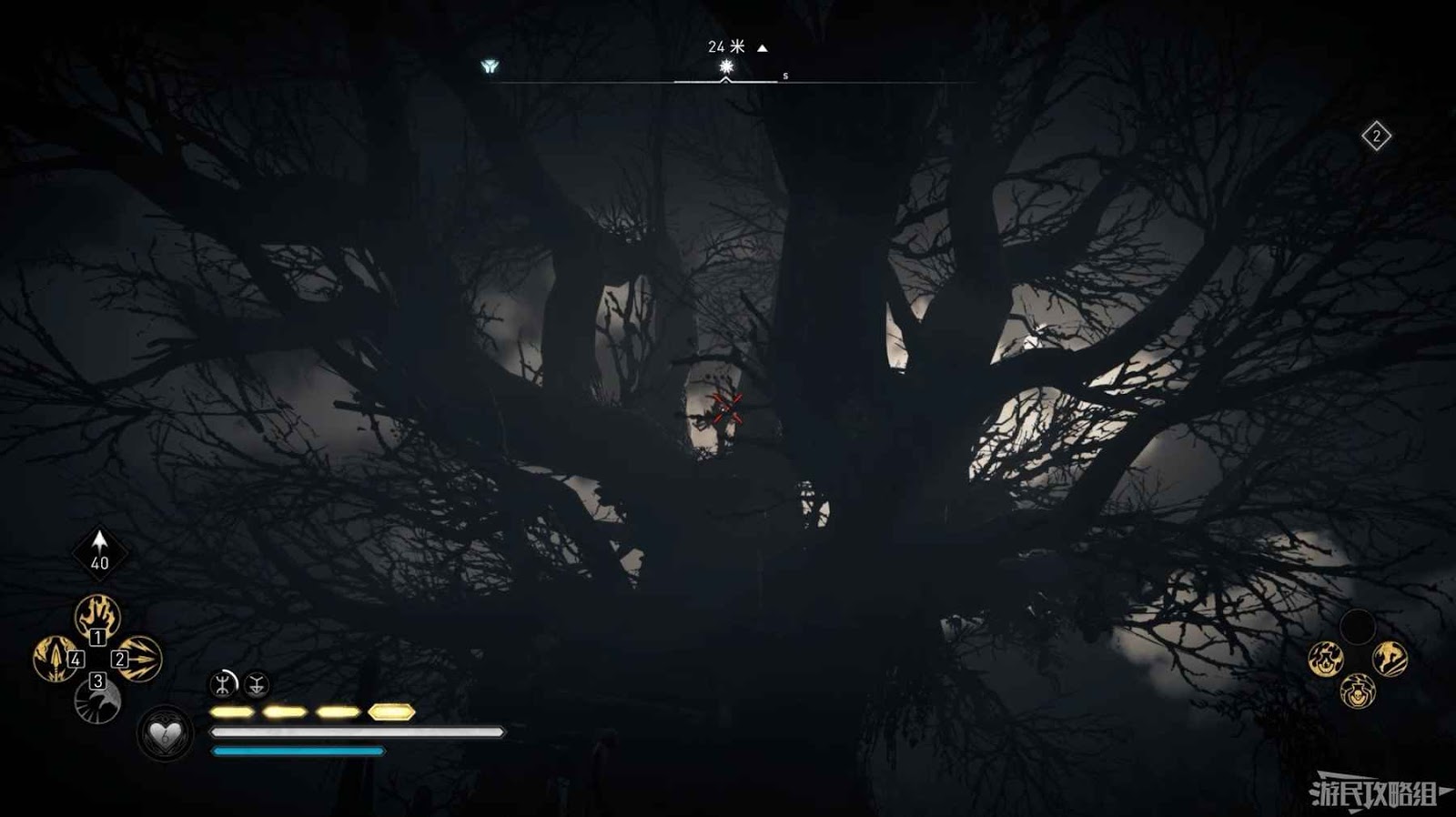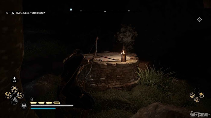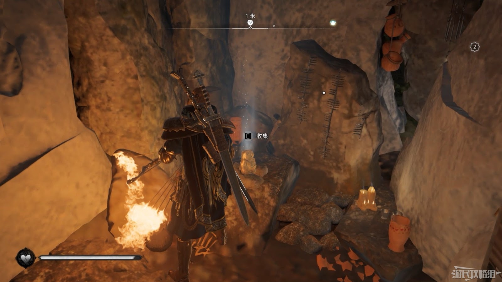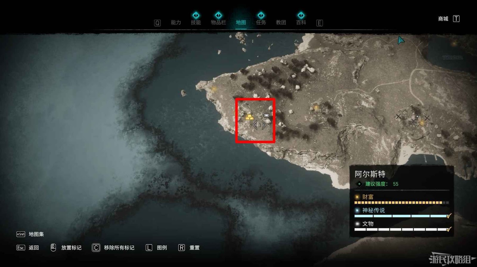 詛咒標記位於崖壁上的一個洞穴中,爬上另一側崖壁上的廢棄船隻處使用弓箭將詛咒標記破壞即可。