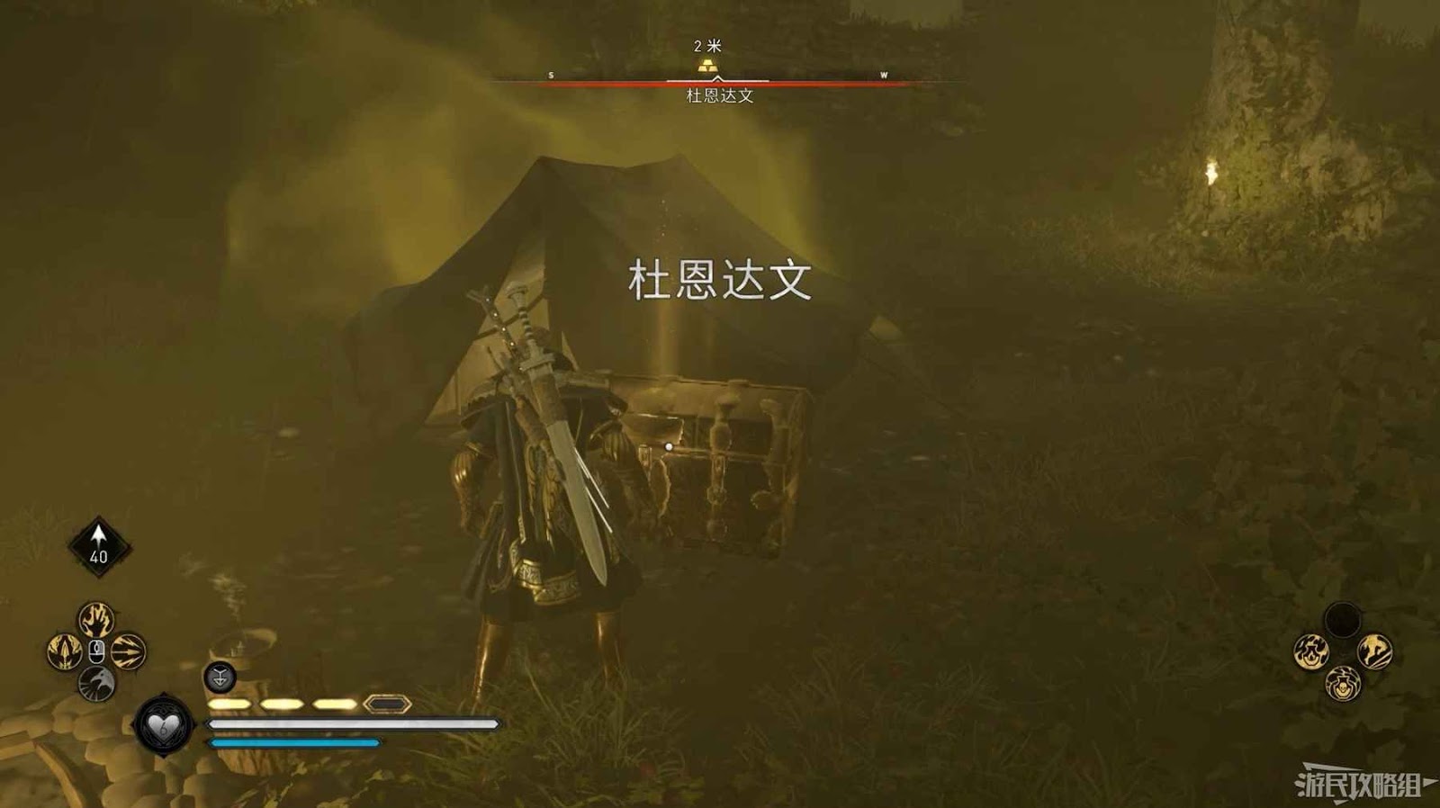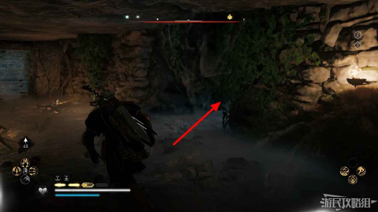 進入洞穴後移開擋路的巨石,在密室中可以找到煙霧箭矢能力。
