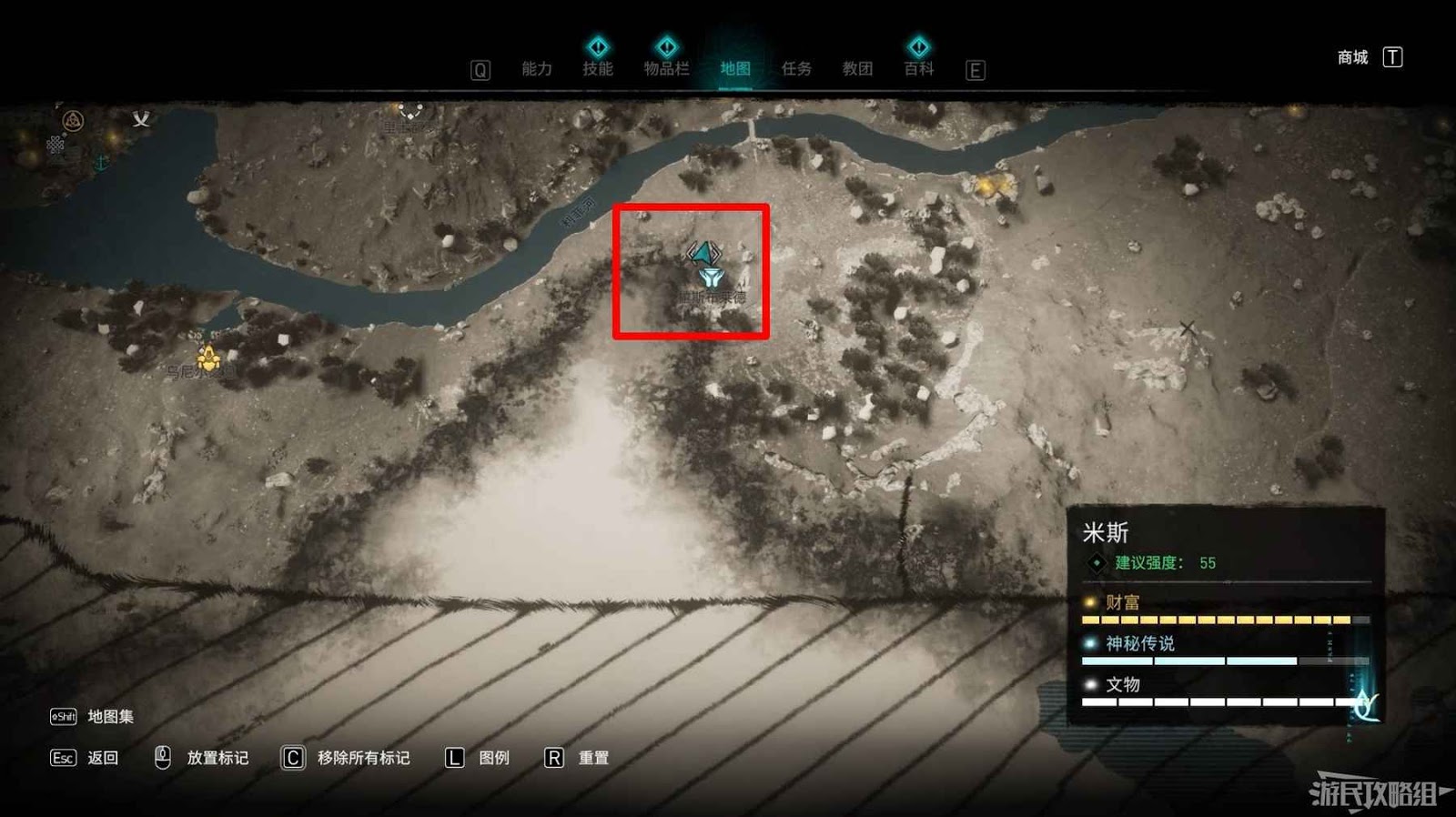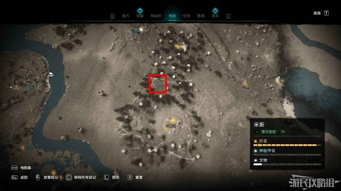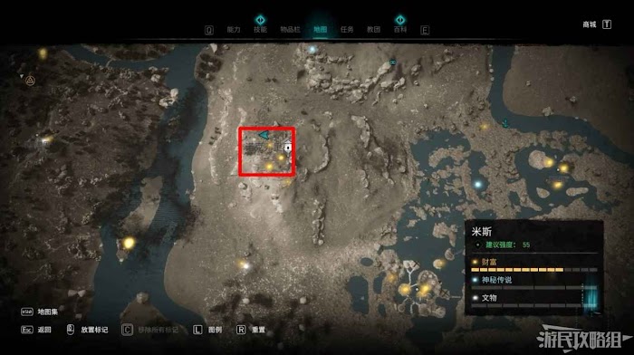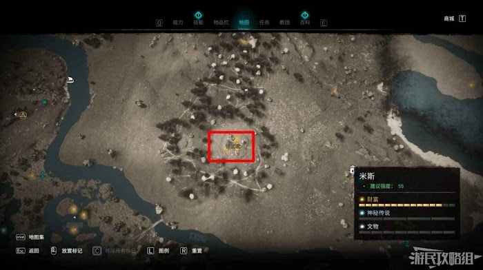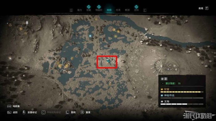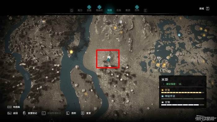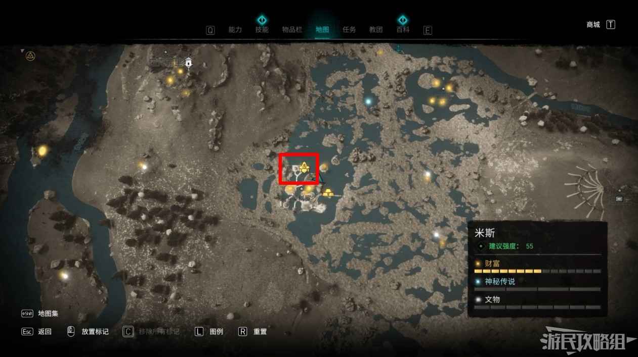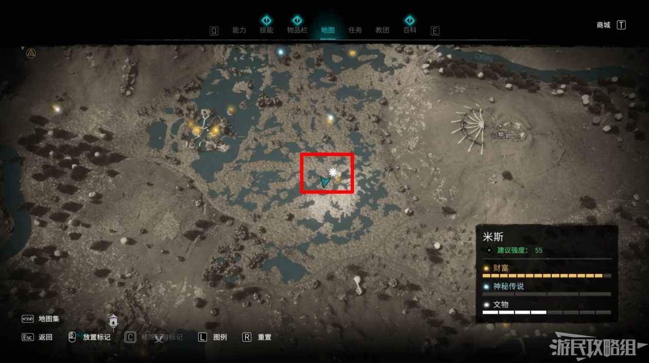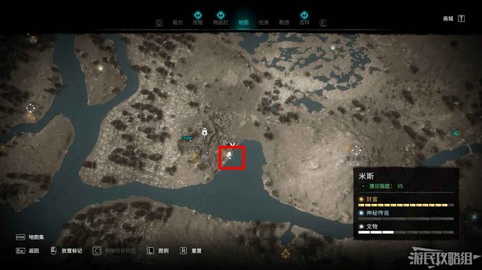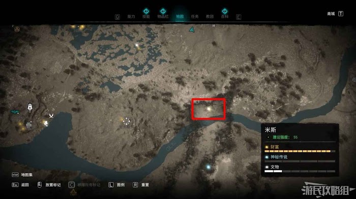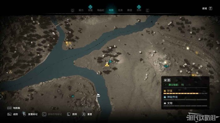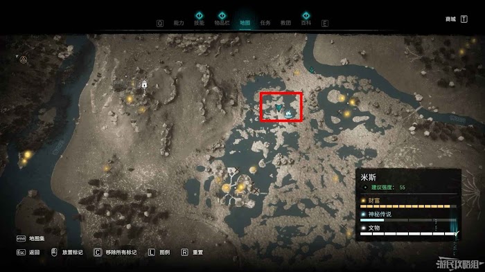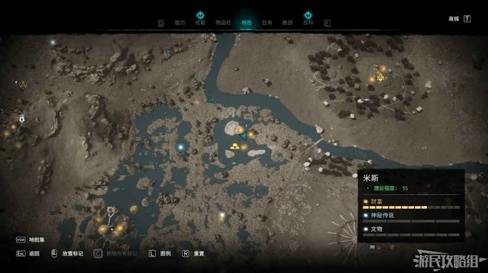 米斯境內共有15個財富可供玩家收集,分別有貿易站補給5份、能力1個、裝備3個和稀有金屬6個。