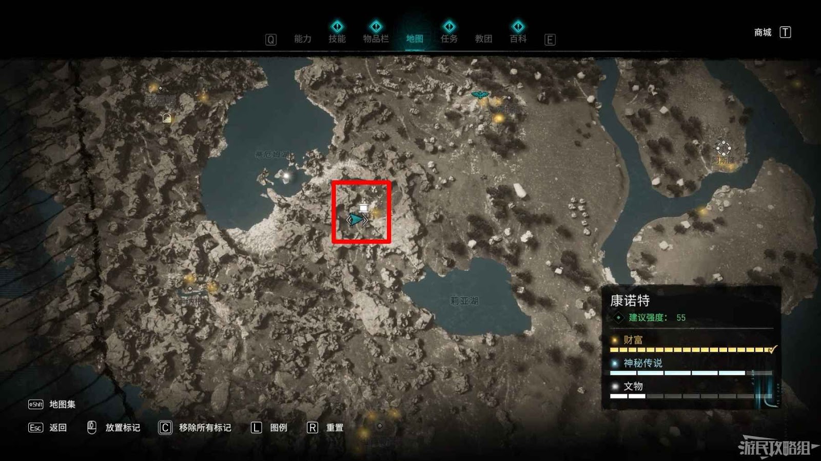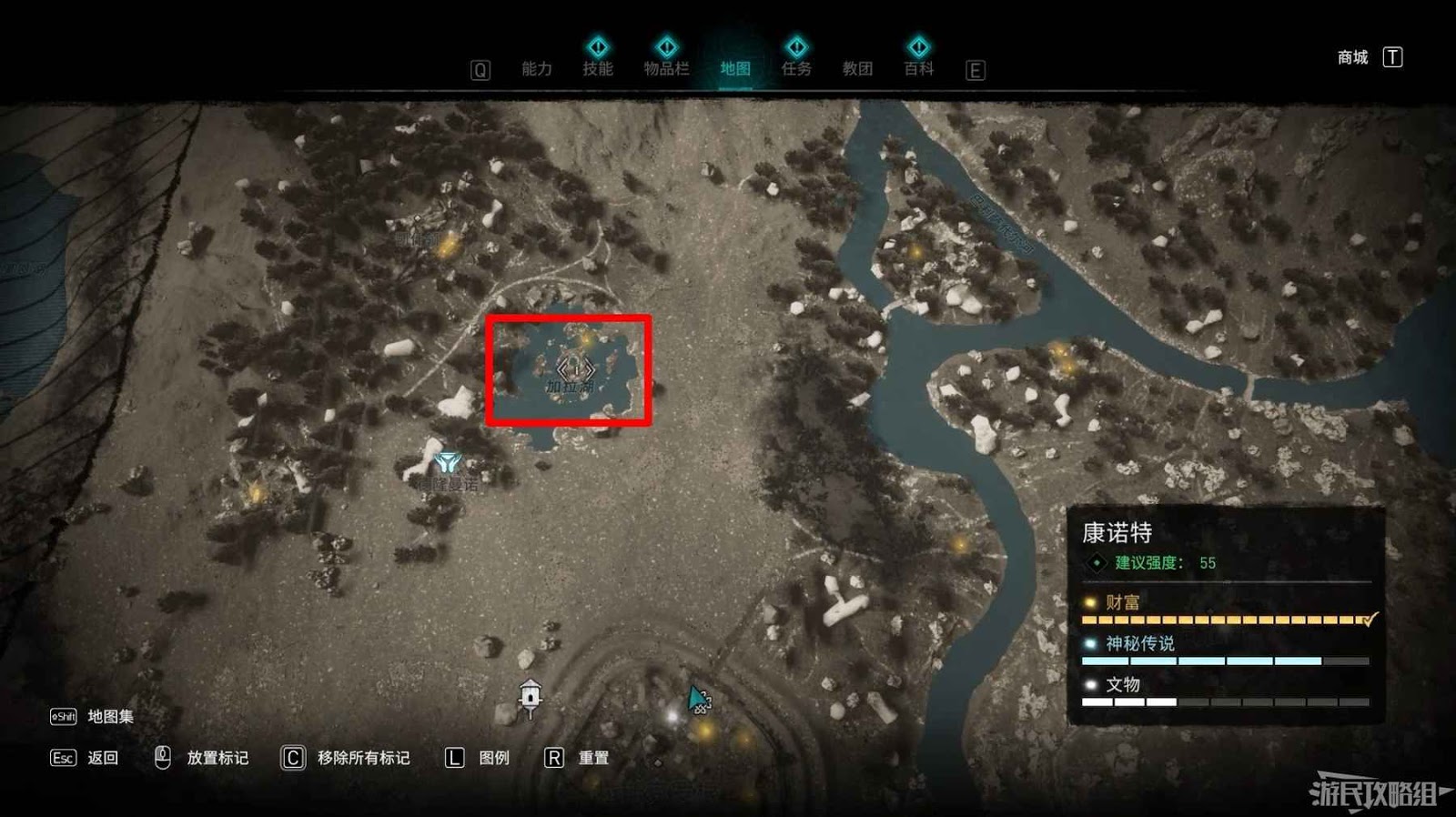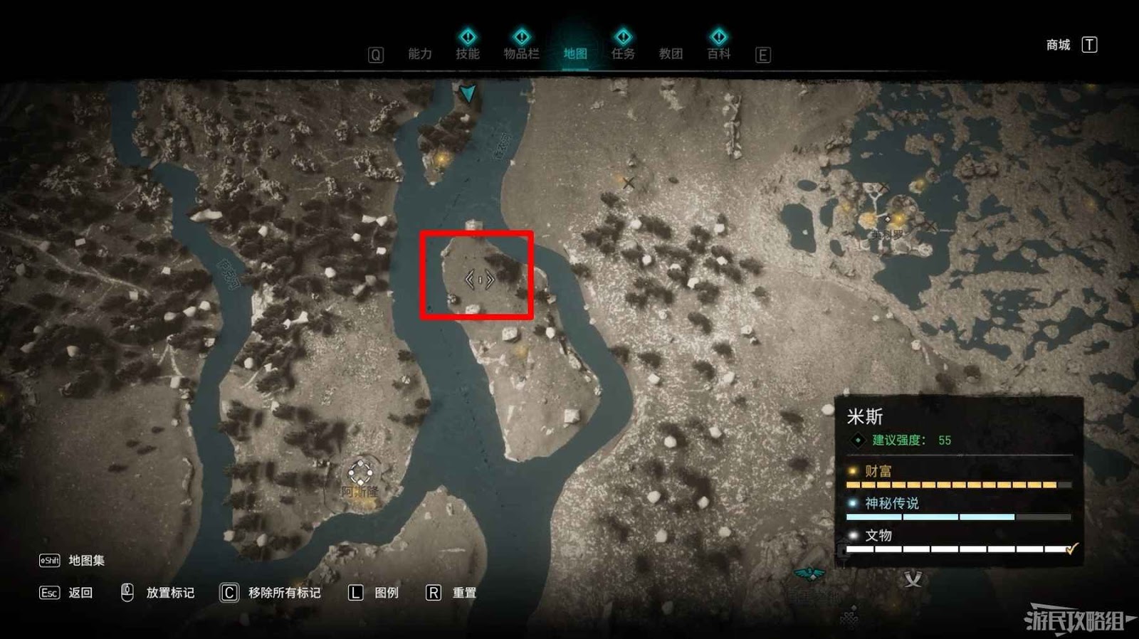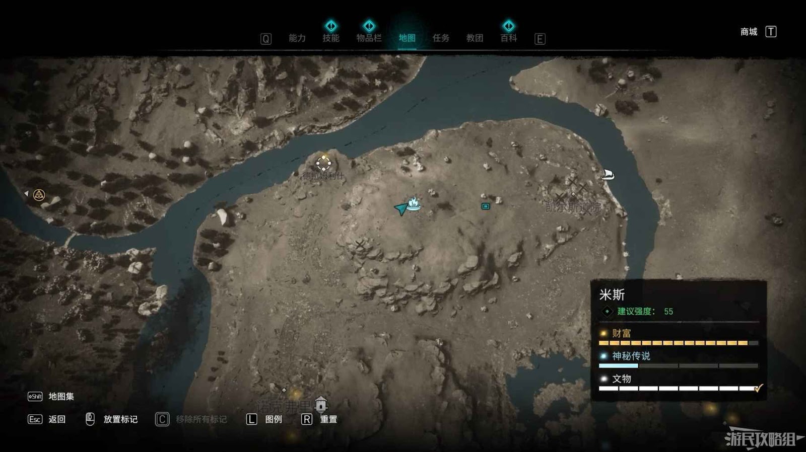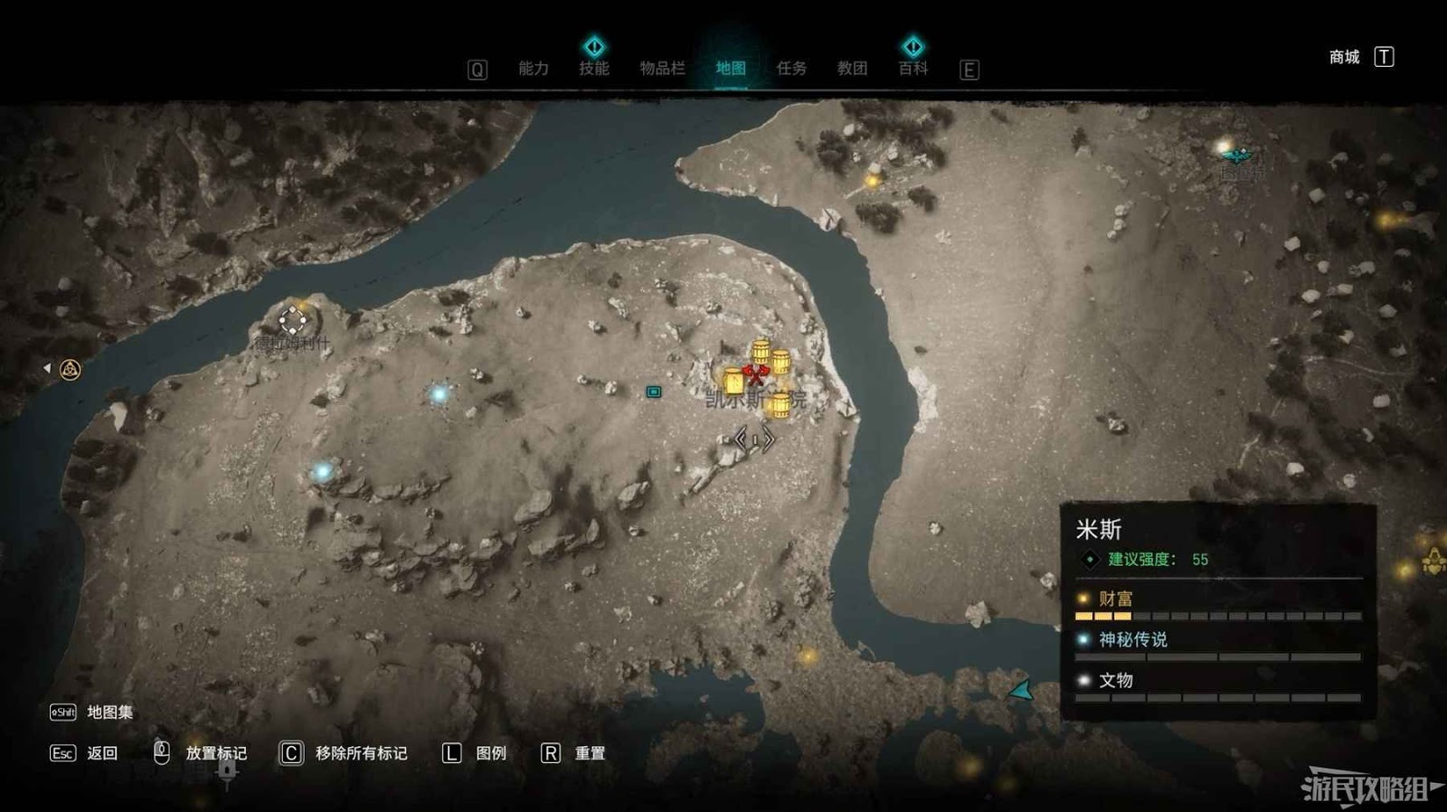米斯境內共有15個財富可供玩家收集,分別有貿易站補給5份、能力1個、裝備3個和稀有金屬6個。