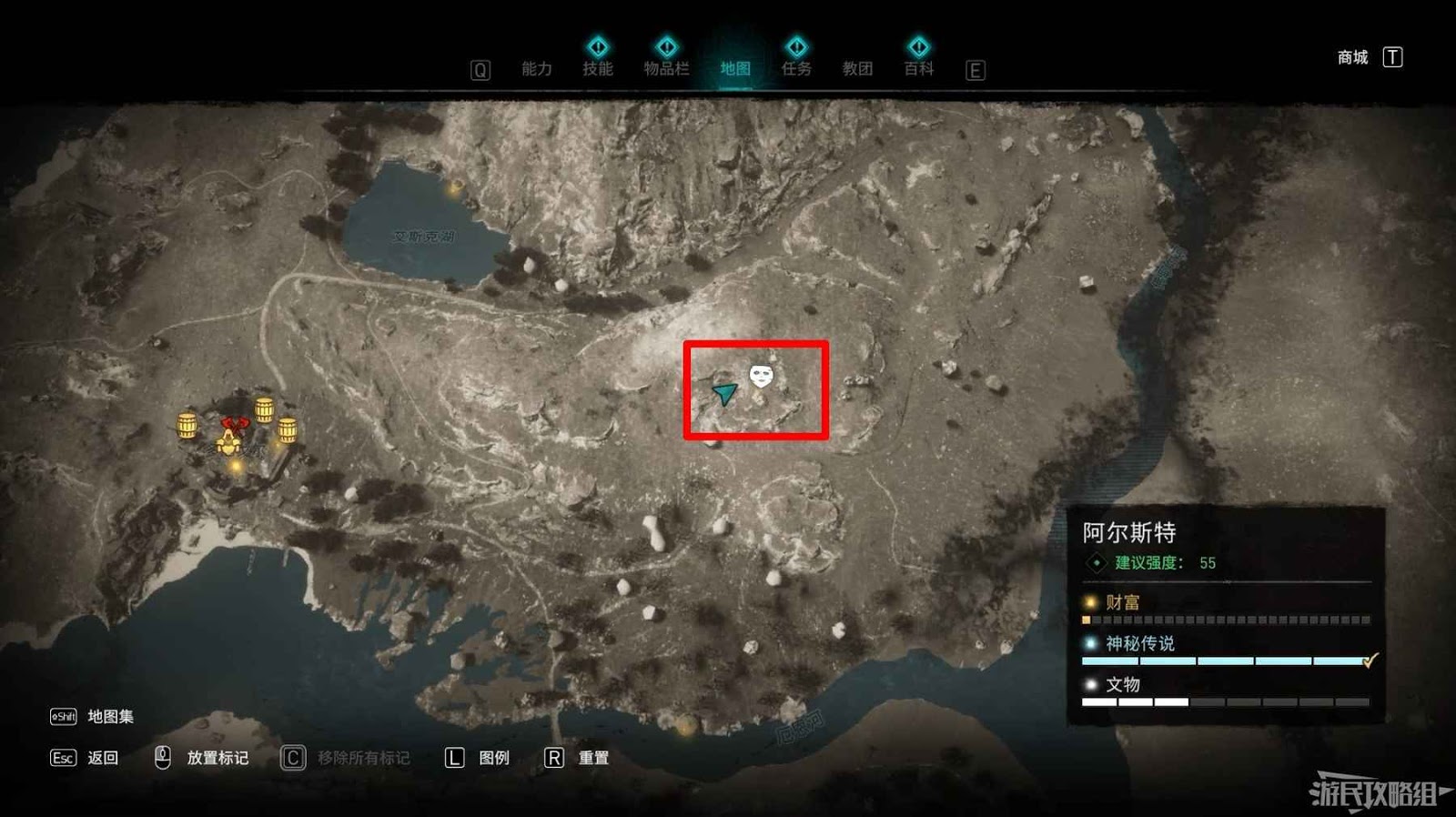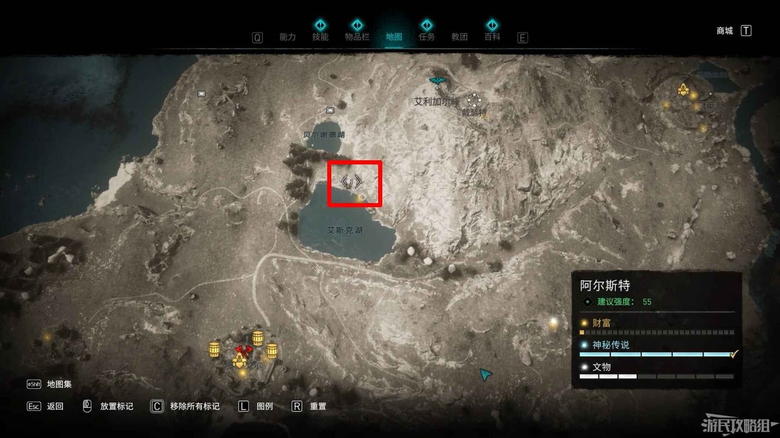 該寶藏埋藏地點位於艾斯克湖北部。