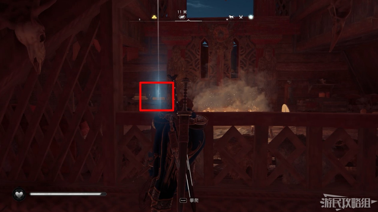 在房屋二層的平台上拿到寶箱鑰匙。