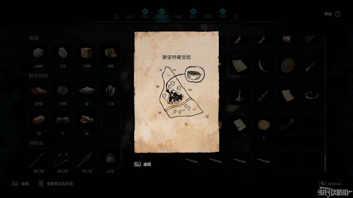具體的藏寶地點會高亮顯示,搜刮此處的寶藏可以獲得黑靈船尾的設計圖。