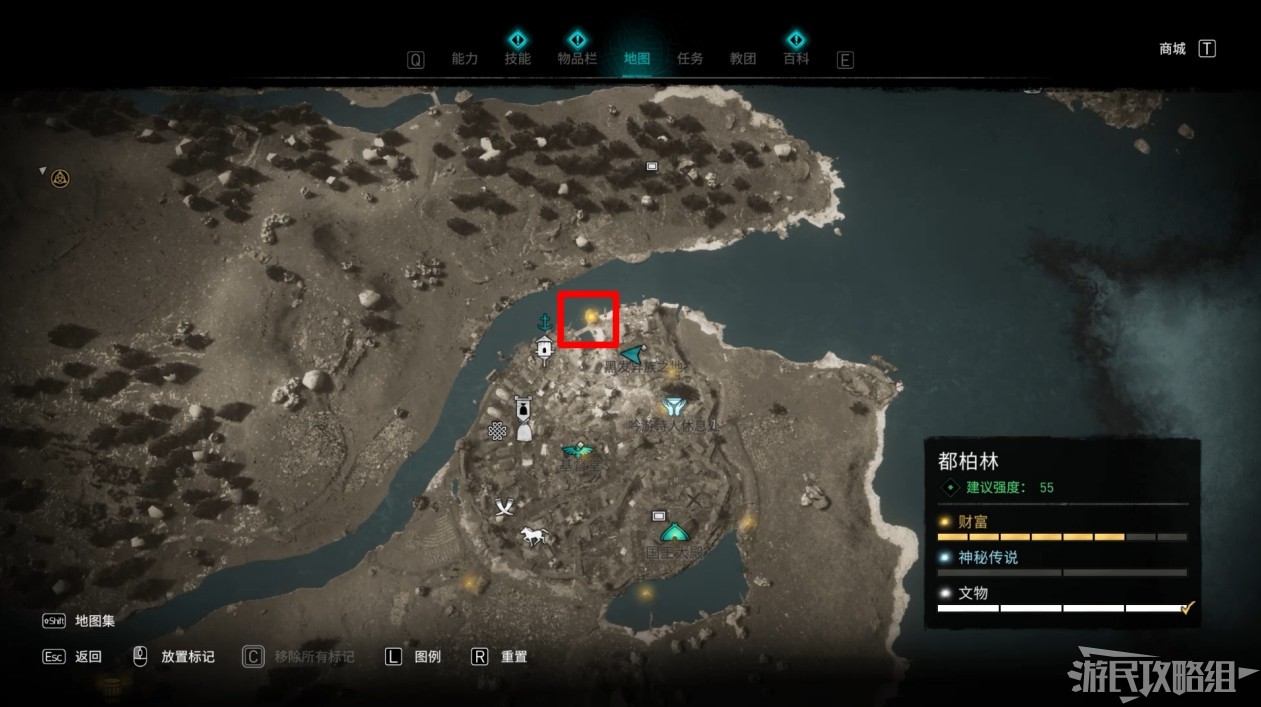寶藏的具體位置位於下圖所標出的位置。