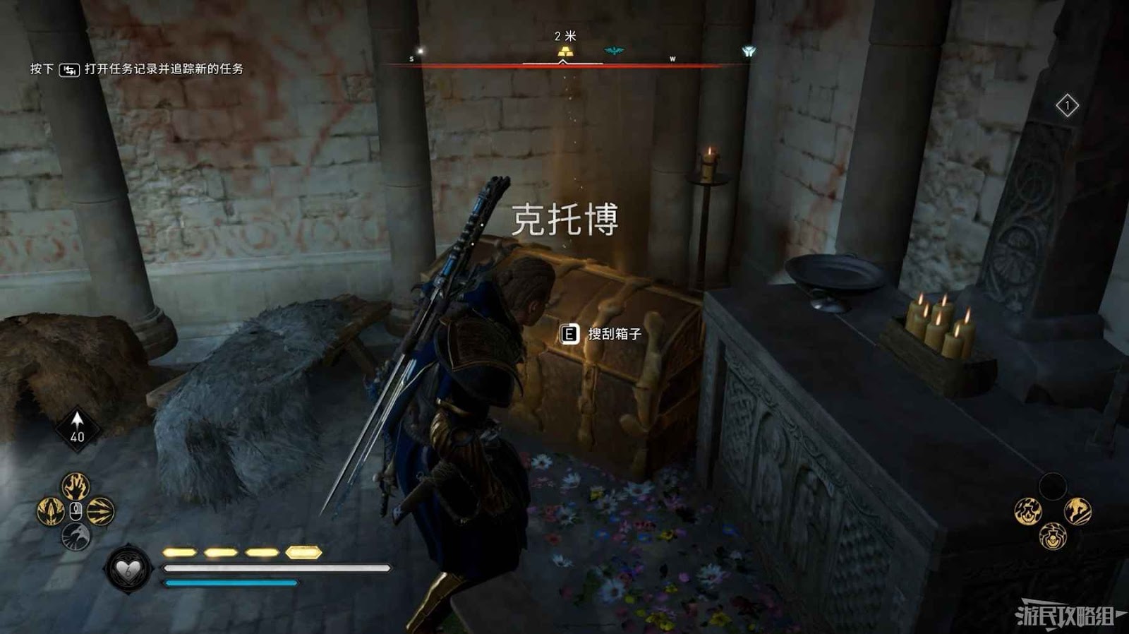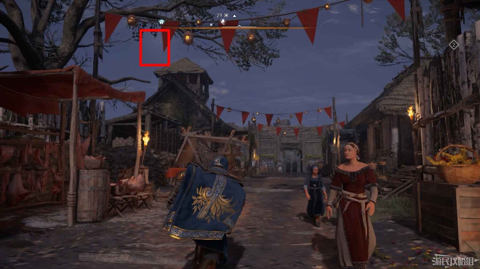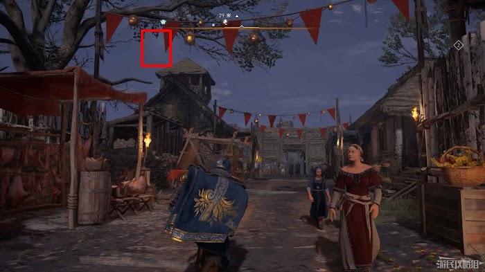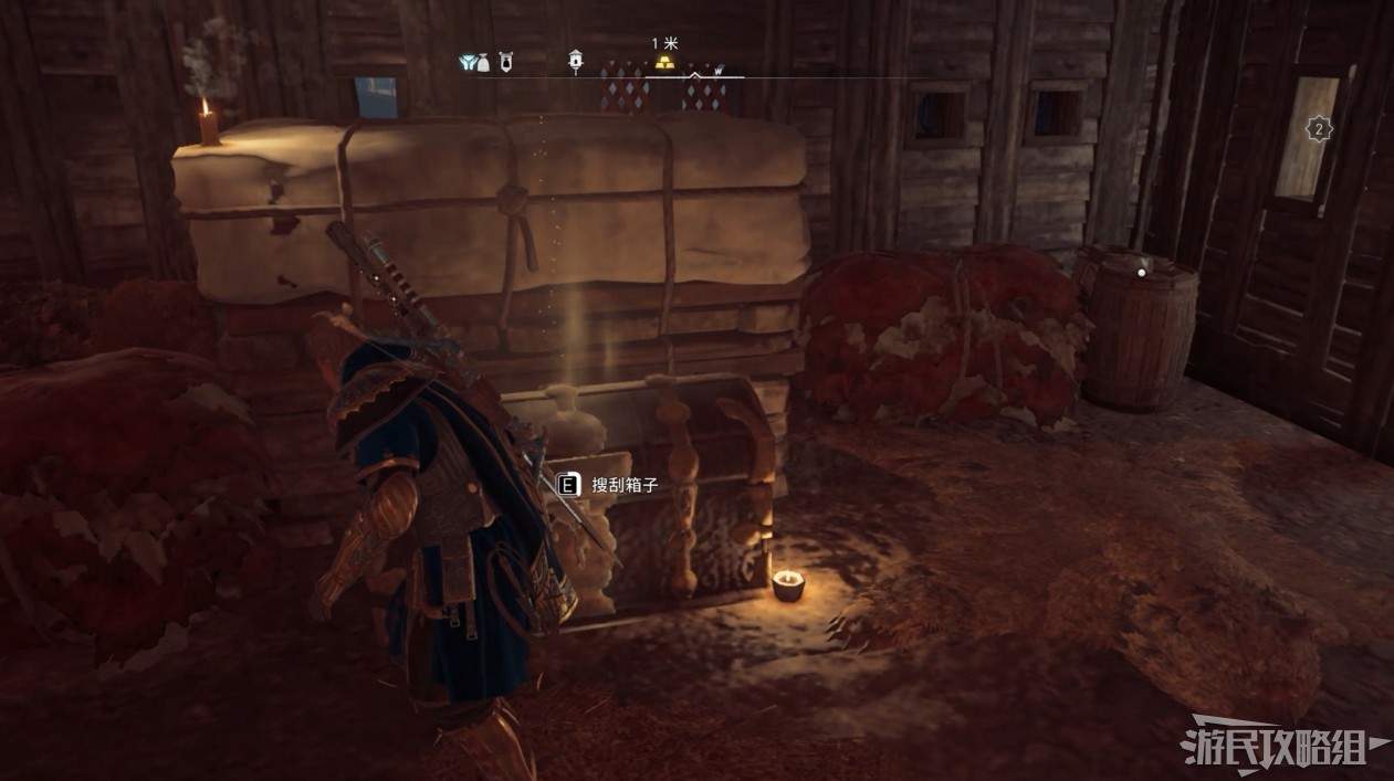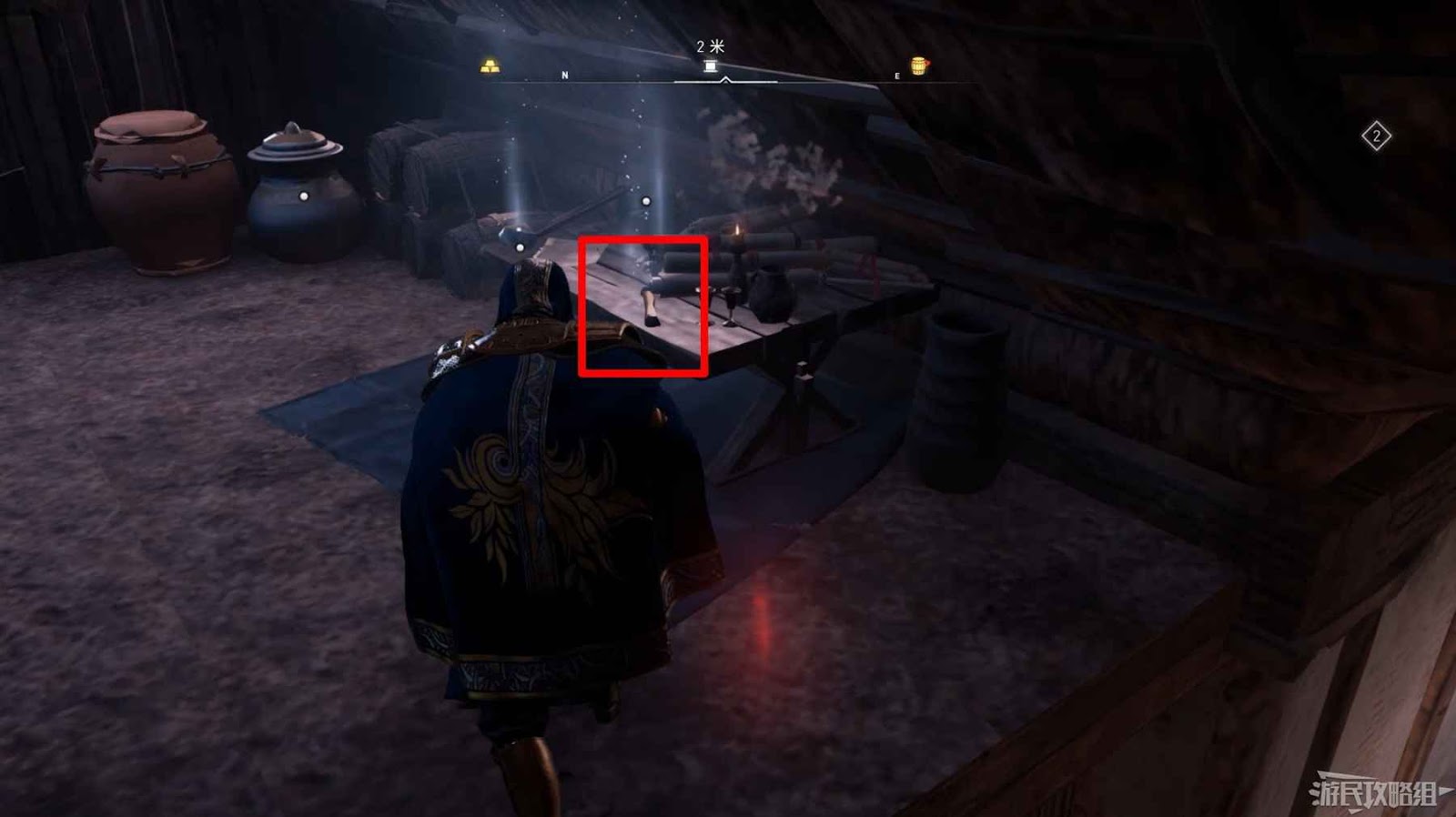來到地圖標記位置,打開長桌旁的寶箱即可。