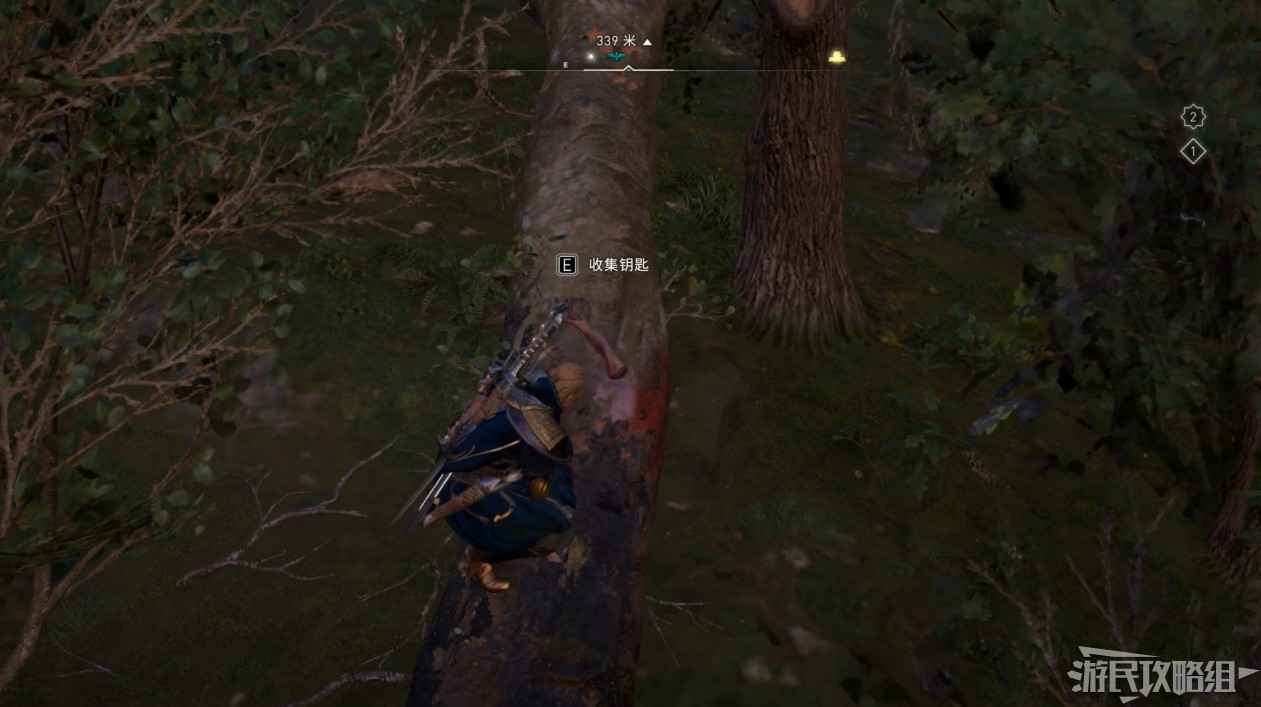 我們首先需要來到小屋後面的樹上拿到寶箱鑰匙。