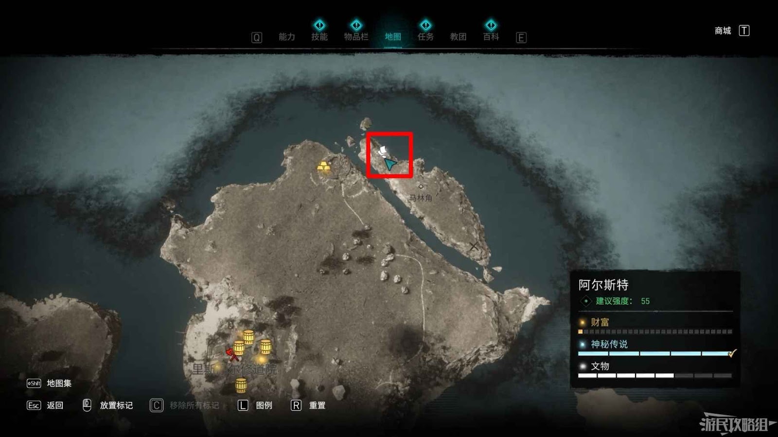 第一個詛咒標記位於阿爾斯特西側大海上的島嶼中。