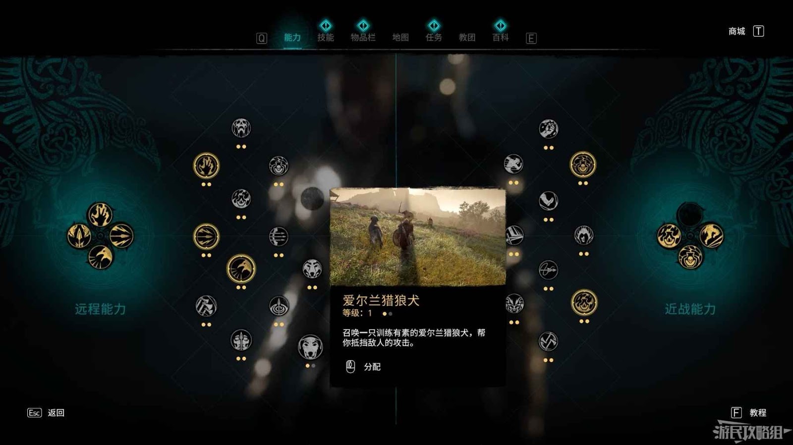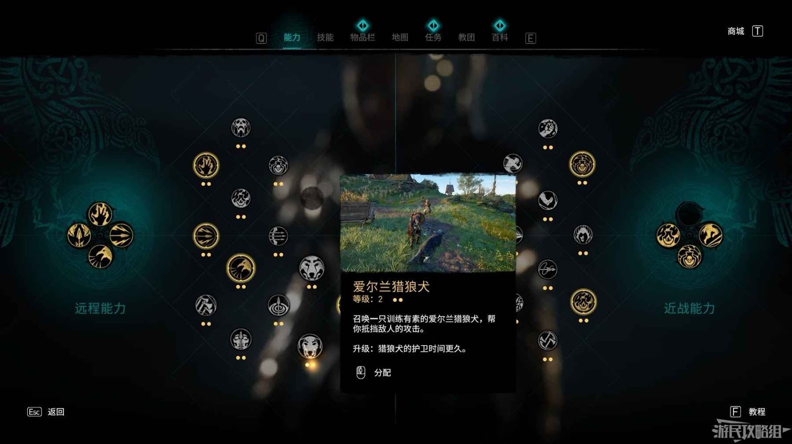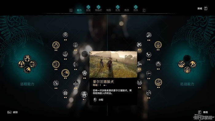 使用爆炸箭矢或油罐破壞地面,在地穴中可以找到愛爾蘭獵狼犬能力。