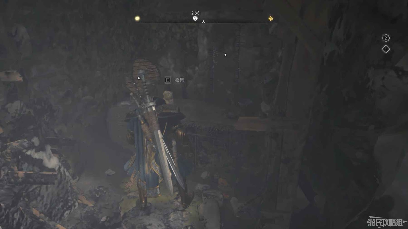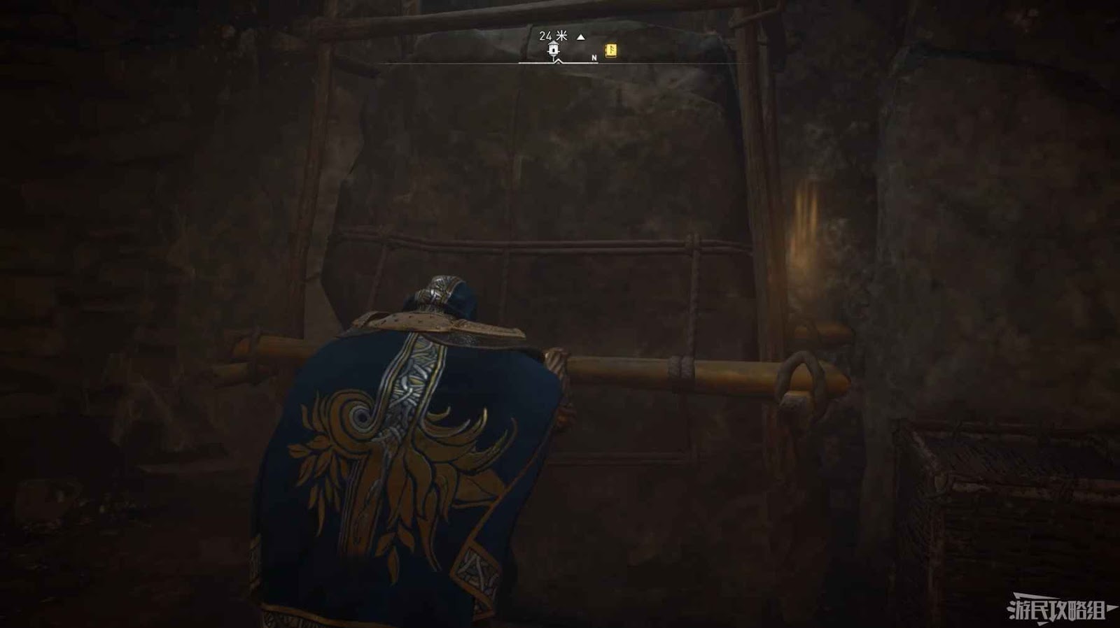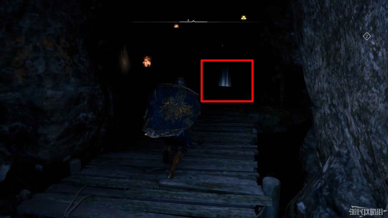 進入通道後右側牆壁上有一個缺口,穿過該洞口即可找到此裝備。
