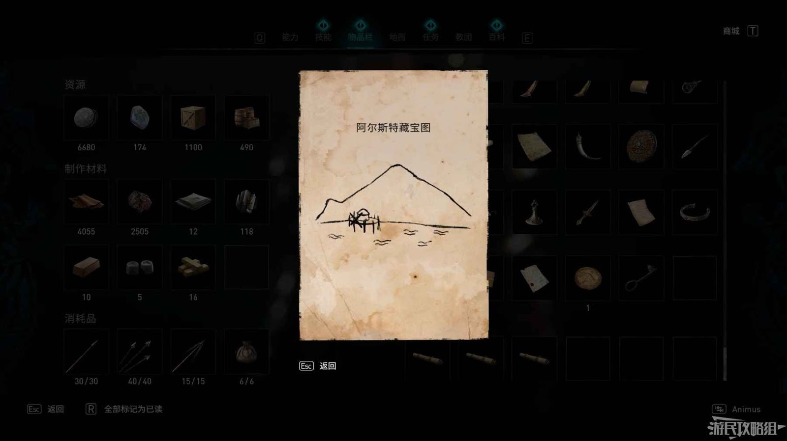 在房間角落的木箱上即可找到該藏寶圖。