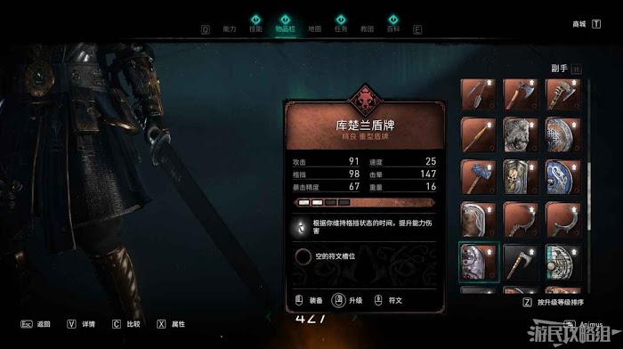 打開寶箱後即可獲得庫楚蘭盾牌,盾牌的基礎屬性如下。