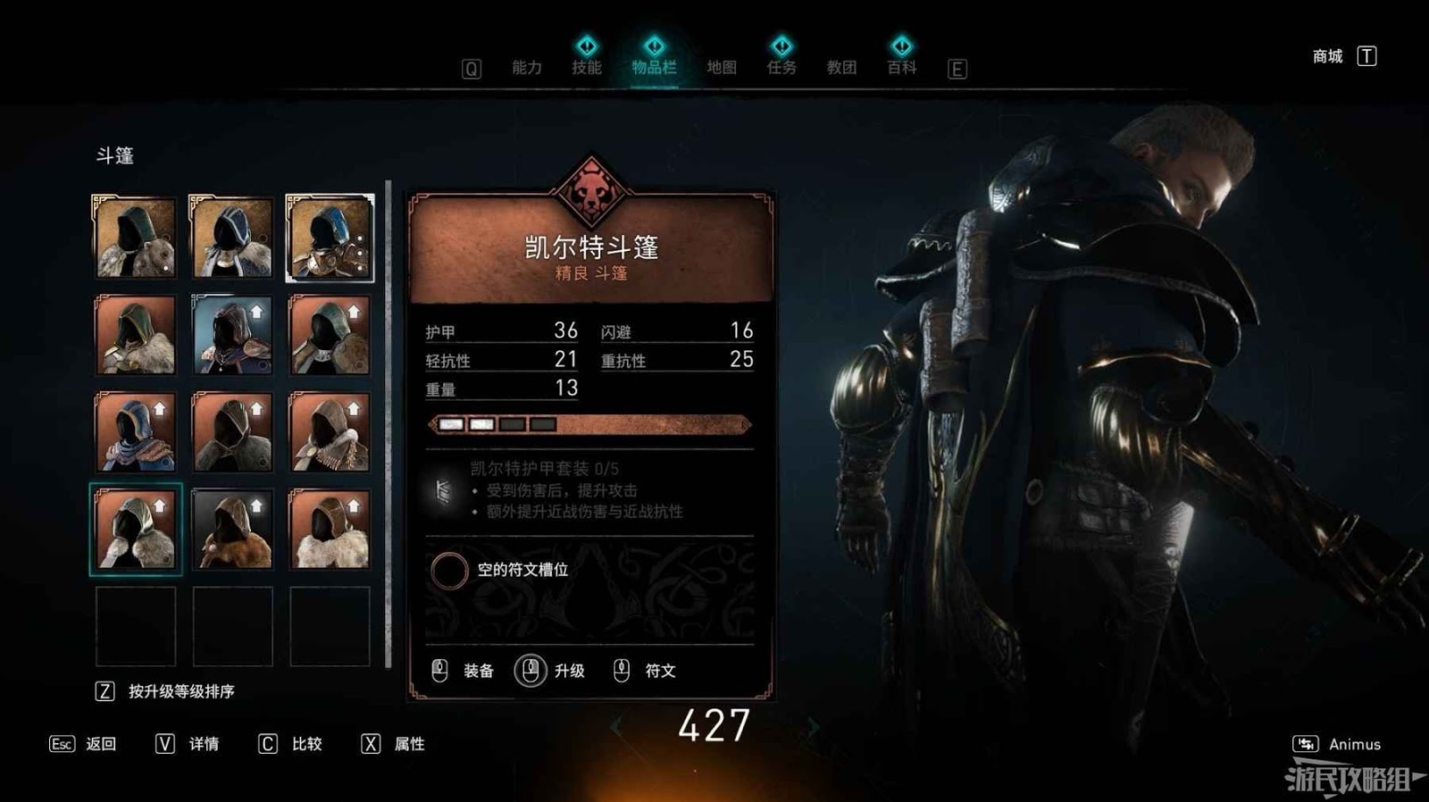 凱爾特斗篷的基礎屬性如下。