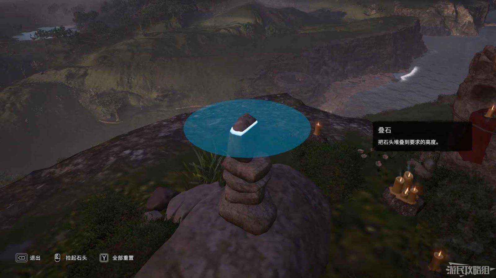將石頭疊起達到一定高度即可。
