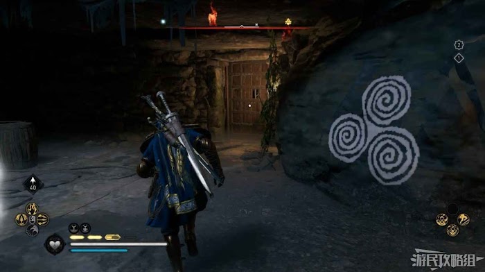 來到最下層打開旁邊牆壁上有三個圓圈圖案的門。