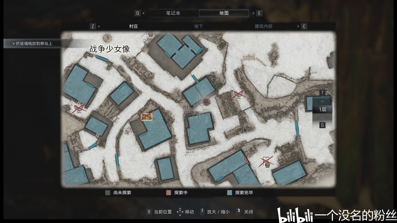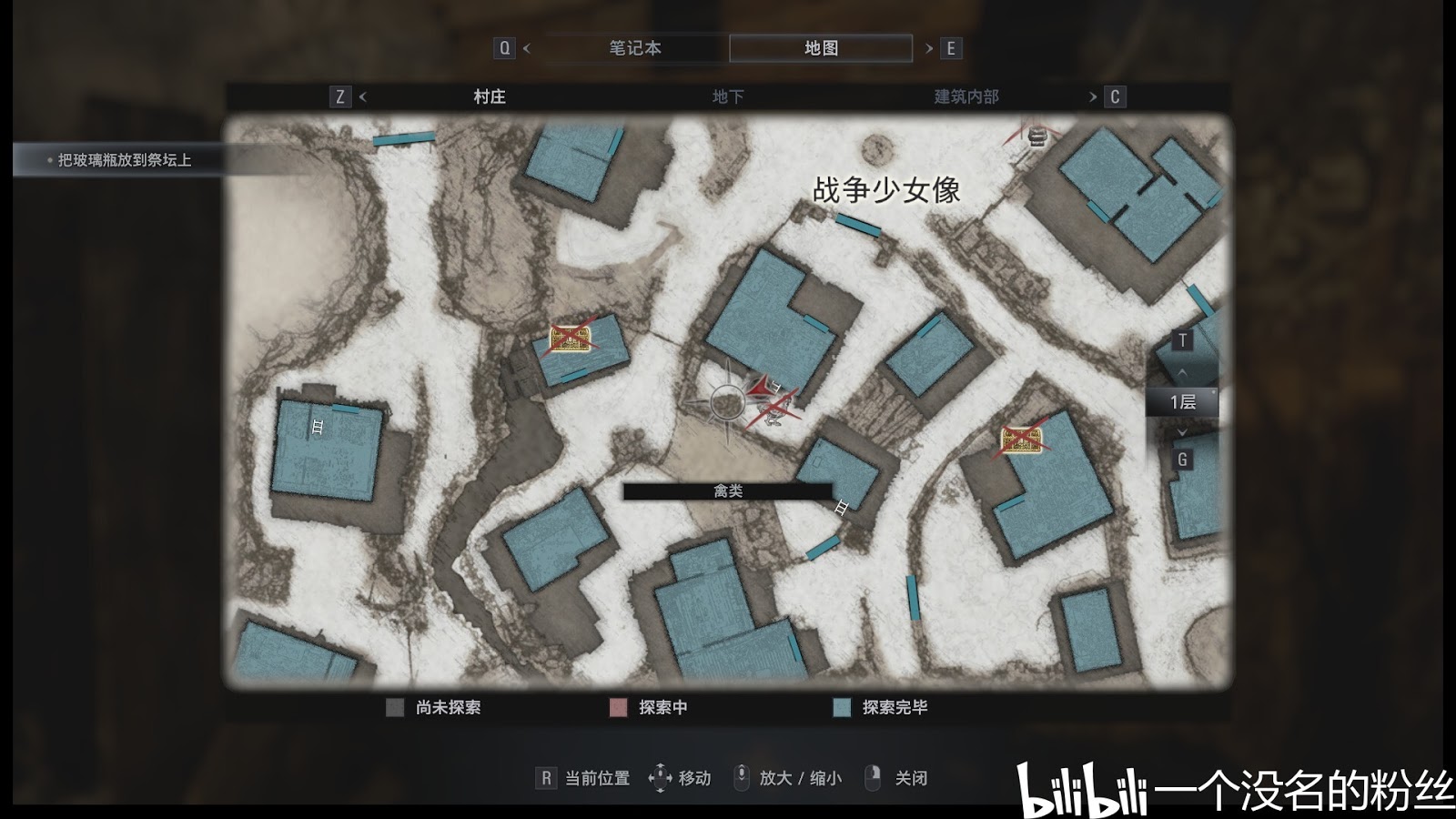 ②再次回到村莊後來到戰爭少女像下面的這個小院子裡,然後在地圖上這個雞的左邊就是第二個廁所,打開就好。