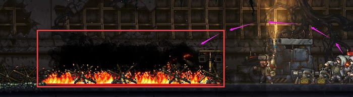 火焰陷阱:從發電機開始數的第二道圍牆,在圍牆下埋設火焰地雷,當該牆體生命值低於50%時自動引爆,造成範圍傷害。