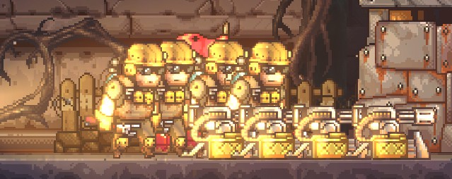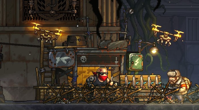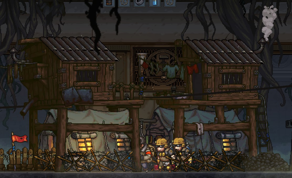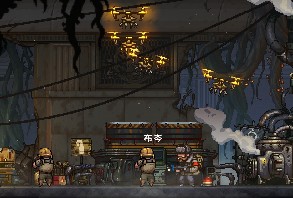 炮艇:有1自動射擊的榴彈炮,2個需要打工人操作的機槍,炮艇可以運輸跟隨自己的部隊,炮艇會在最左方圍牆,發電機,最右方圍牆,三處區域停留。