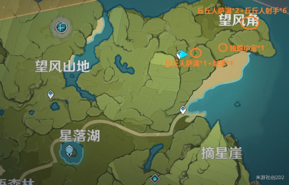 8. 傳送點附近即可看到2丘丘人薩滿(風+草)+2丘丘人射手。