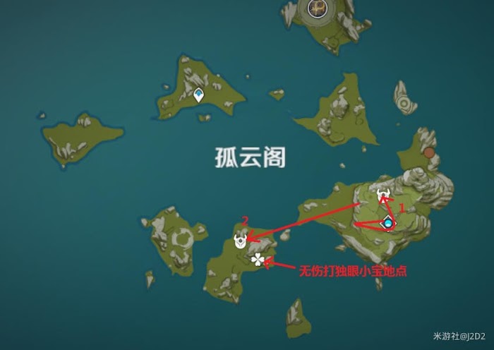 4. 傳送後飛到標記點即可看到1獨眼小寶+風拳+岩法師