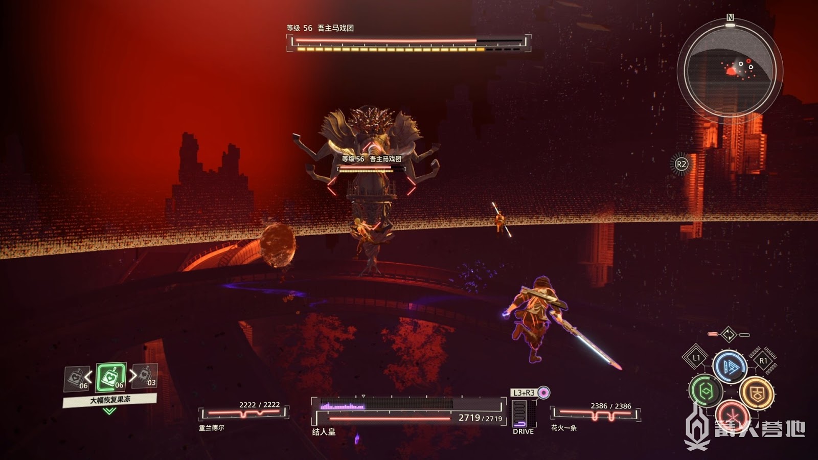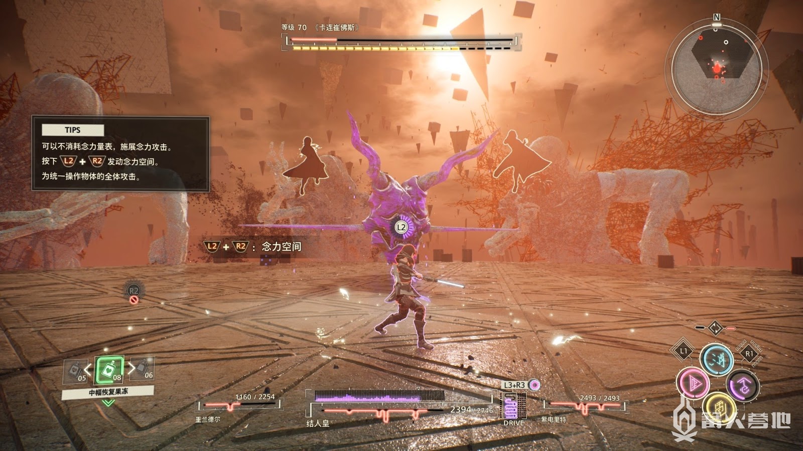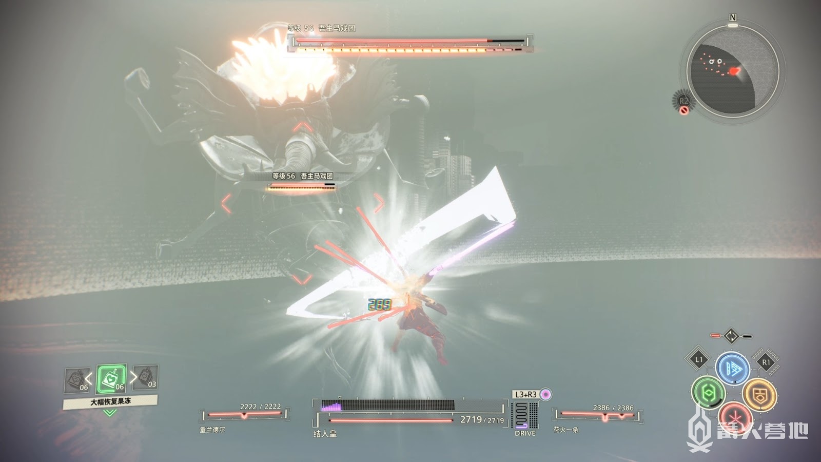 這個形態BOSS攻擊輸出很高,手上的劍也是無敵不吸收傷害,請注意BOSS劍甩出的劍氣攻擊同時保持距離,難度不高善用念力攻擊即可讓BOSS倒地