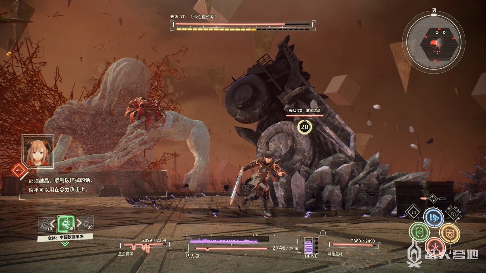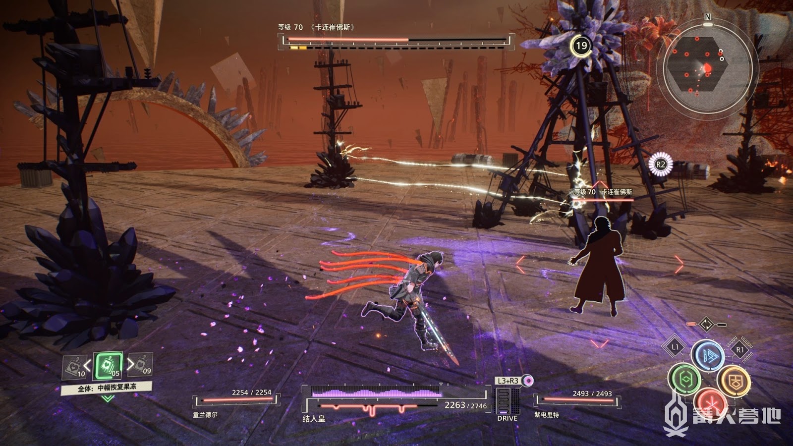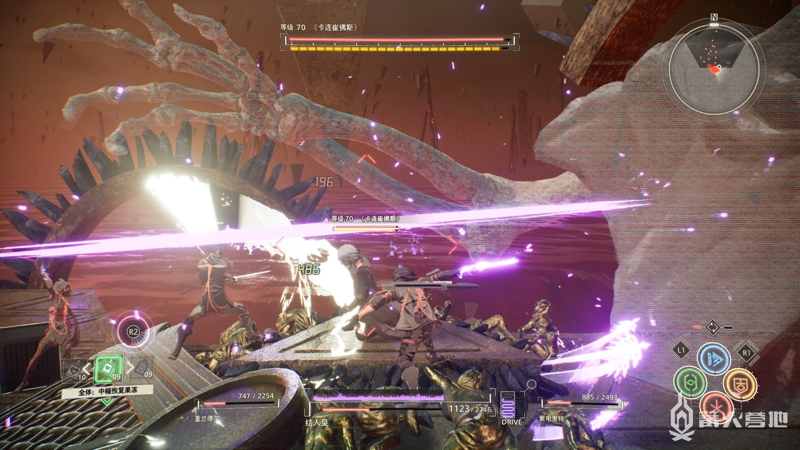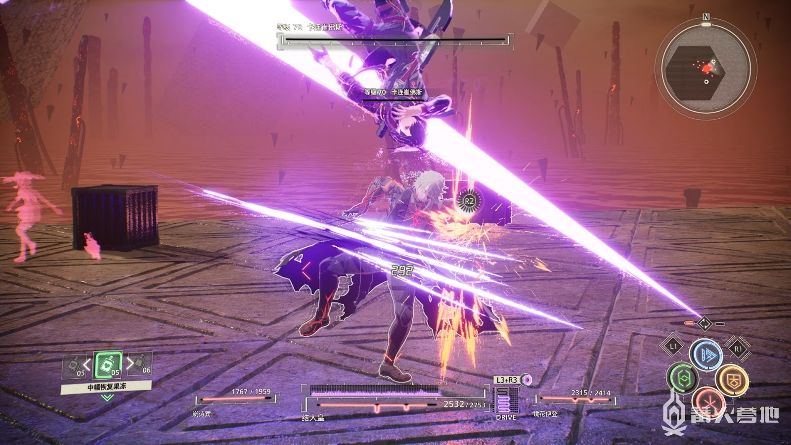 這個形態BOSS攻擊輸出很高,手上的劍也是無敵不吸收傷害,請注意BOSS劍甩出的劍氣攻擊同時保持距離,難度不高善用念力攻擊即可讓BOSS倒地