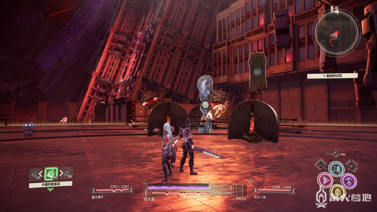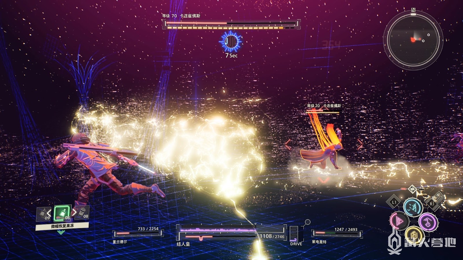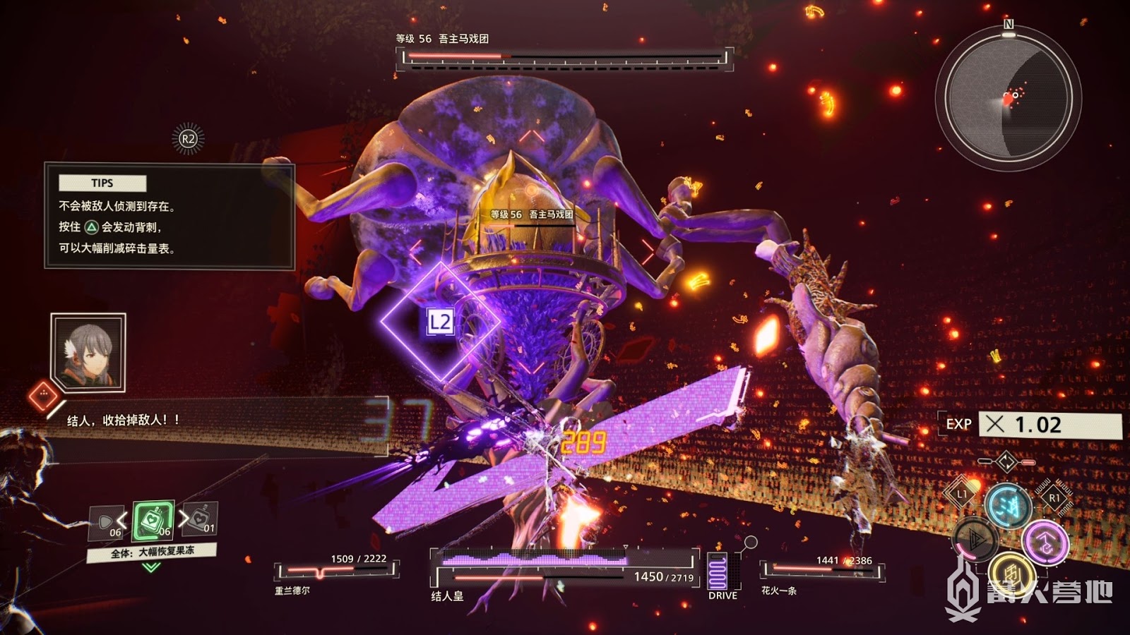 儘量接近BOSS避免盾牌噴射水槍的攻擊,操控自己的鏡頭視角來到BOSS背後進行輸出