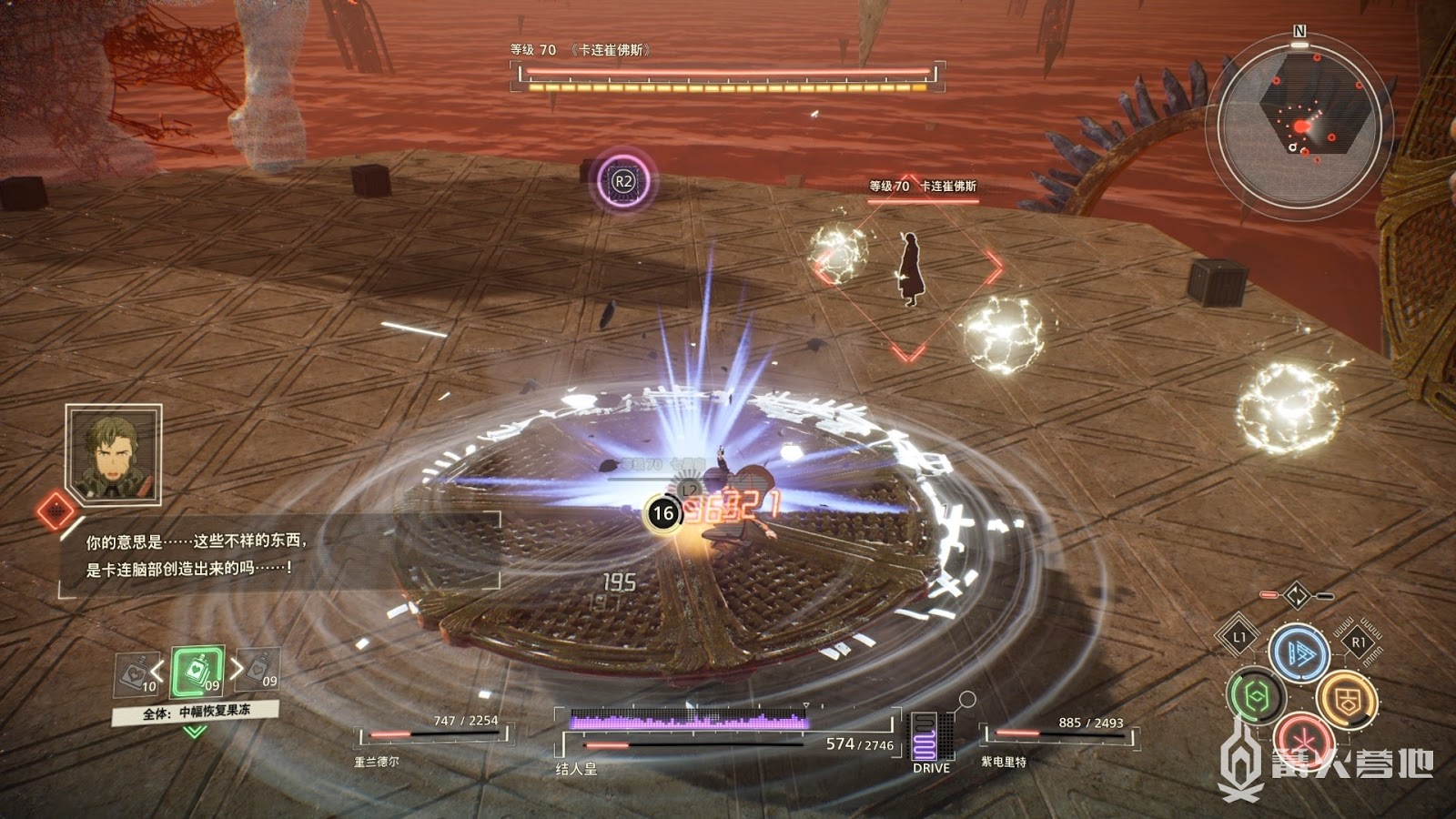 等待兩次夥伴回歸後卡連出現血條,再次把卡連擊敗,戰鬥完全結束