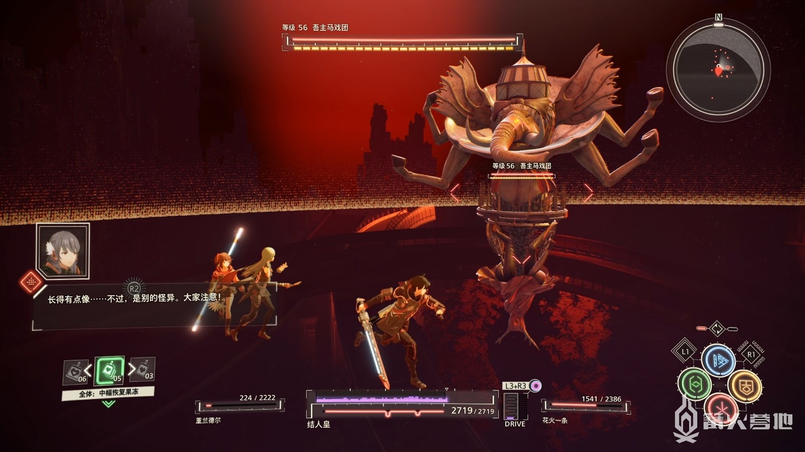 注意大象鼻子噴出的煙霧攻擊,本次形態基本需要保持距離,即使你想接近BOSS他也會不斷的和你保持距離