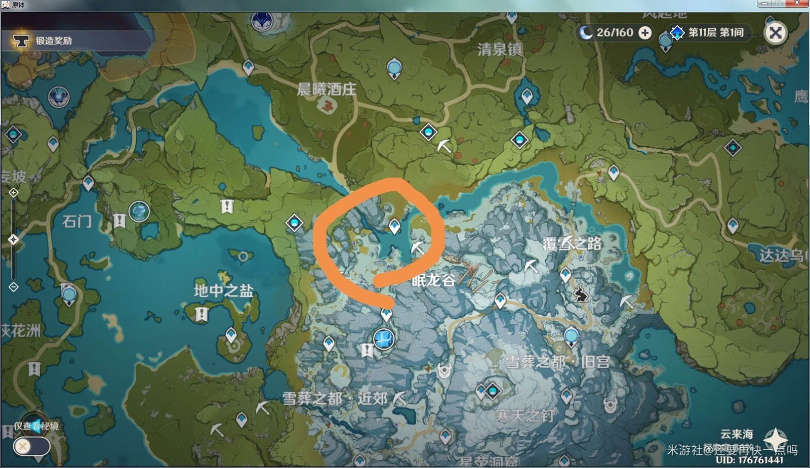 如果還想刷愚人眾,雪山這裡有一窩,十幾隻吧。還有雪山野豬王和凍野豬,我平時不殺小動物除了野豬,為了肉我也就只能每天來和野豬過不去了。