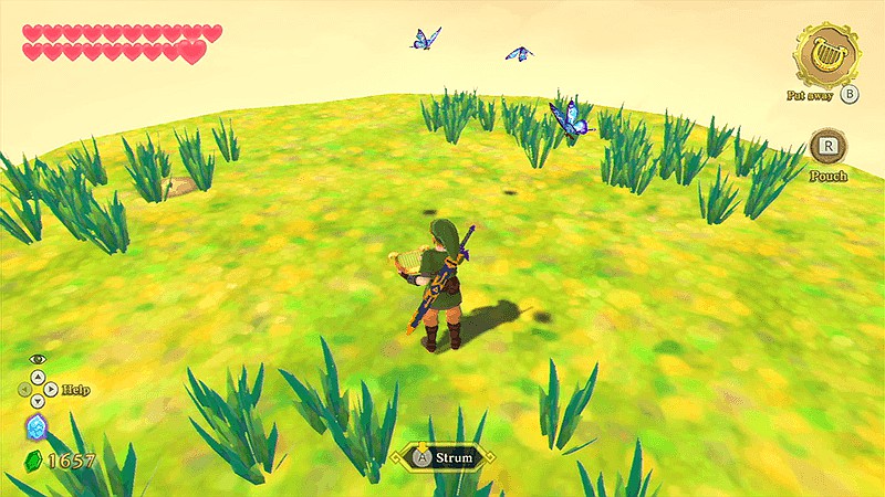 位於森林深處。來到天望神殿附近,爬上左邊的平台,找到成群的神聖鳳蝶並彈奏女神豎琴。