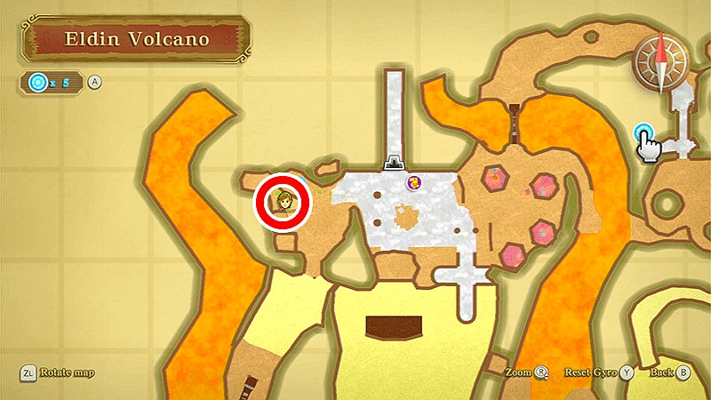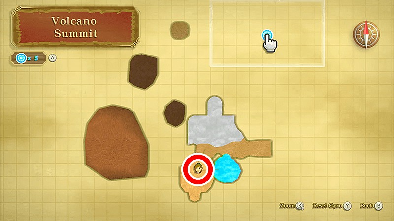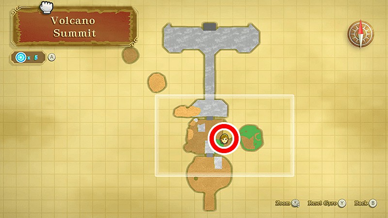 位於火山山頂。首先來到火山山頂的瀑布旁邊,找到女神方塊所在的石柱,使用滑翔披肩前往後面的另一個平台,在高處平台的藤蔓上用飛爪飛到瀑布上方。