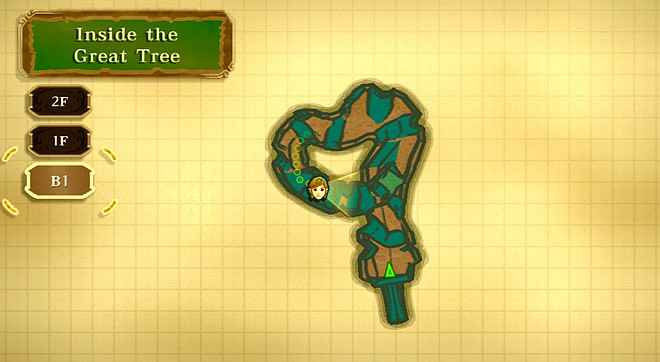進入大樹內部,來到高處北側的平台上,然後跳下去落到東側的樹根上,穿過一條繩子就能找到