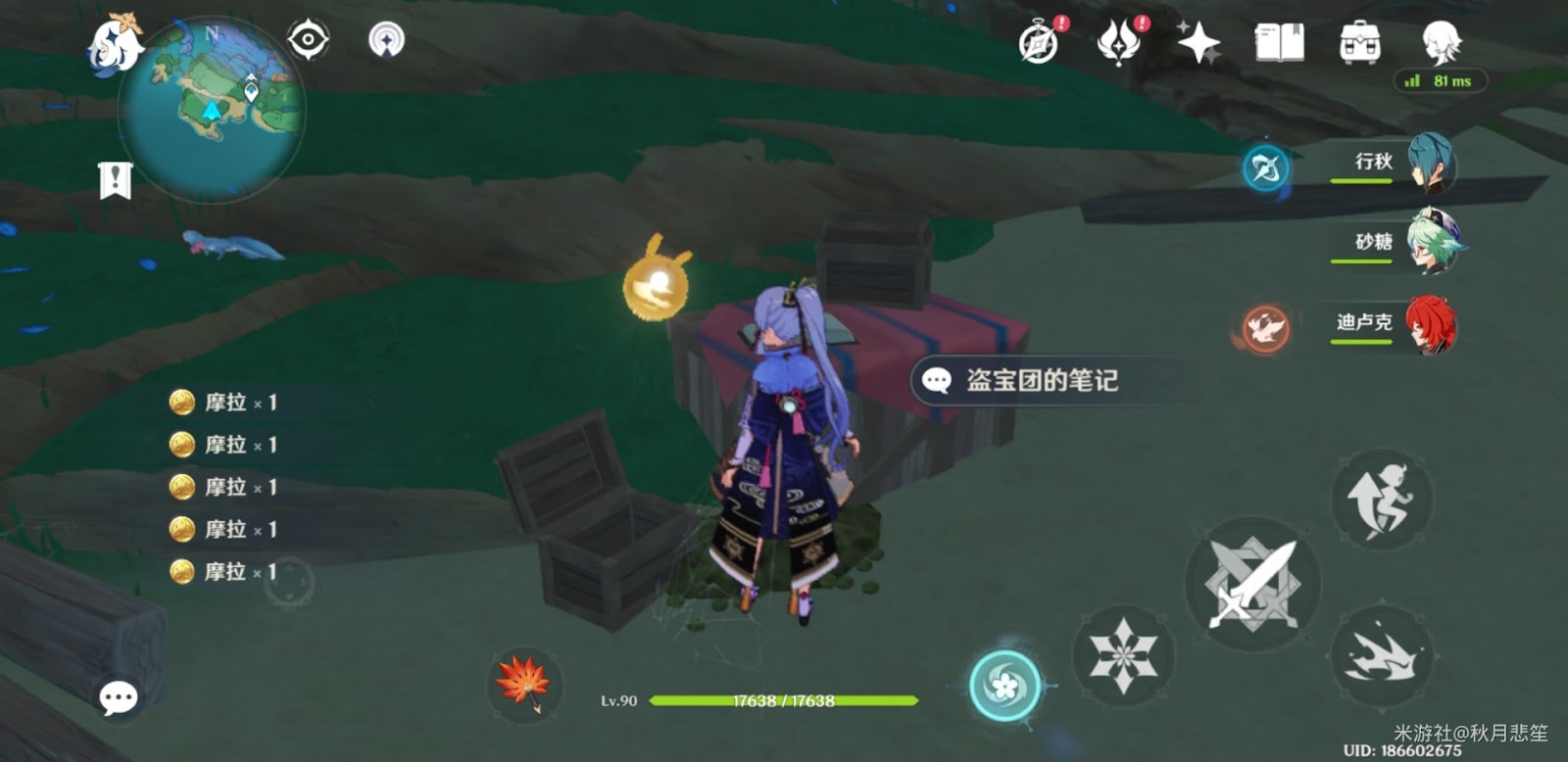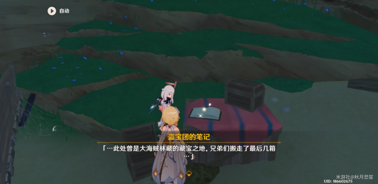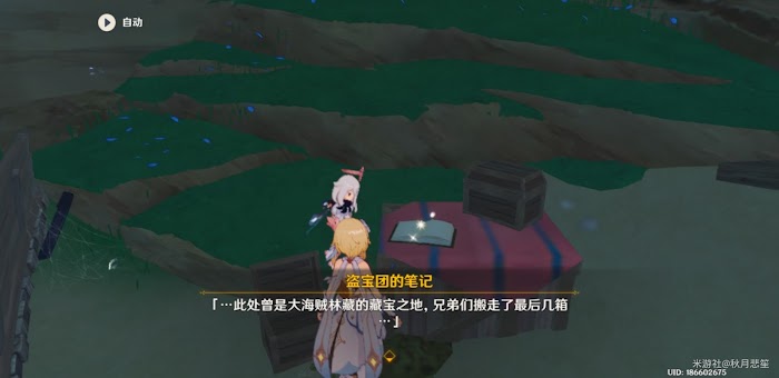1、第一步,先到望瀧村的傳送錨點西南邊小島上的山洞裡閱讀盜寶團的筆記。