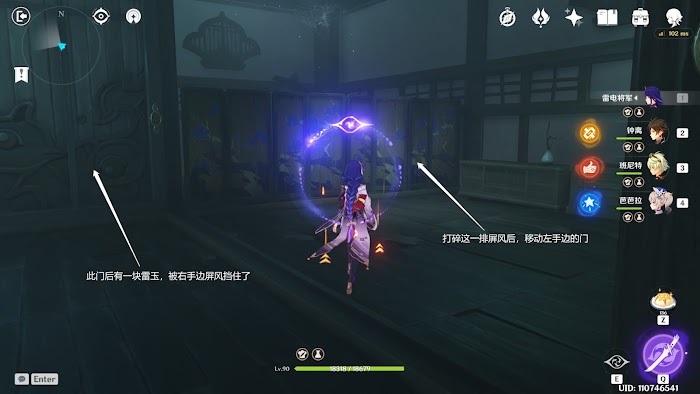 打開門後,破壞面前兩排擋門屏風。破壞後,打開上圖位於左手邊的門。