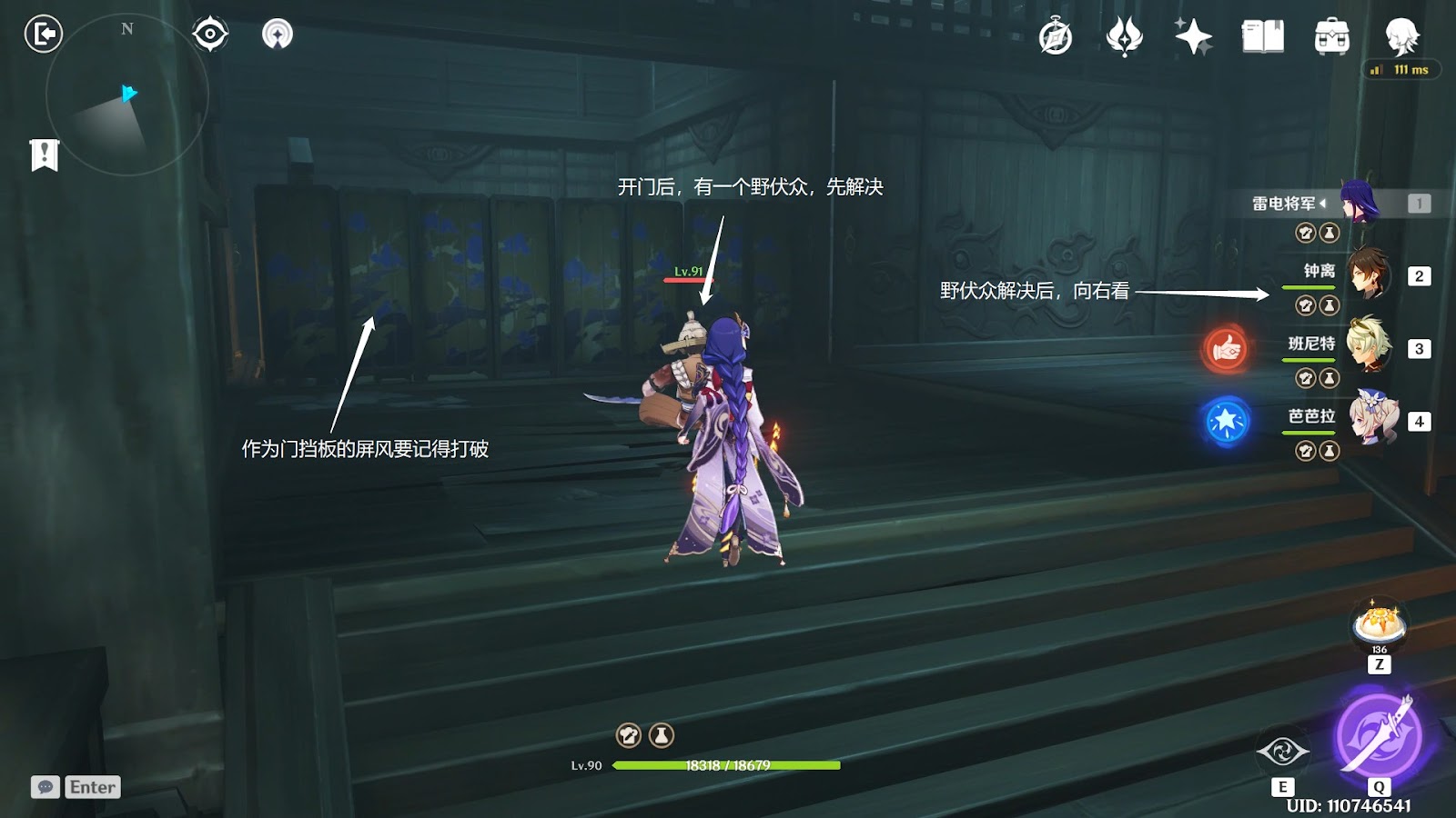 開門後,有一個野伏眾,我們先將他解決。解決後,我們向右轉(注意:屏風記得打破)。